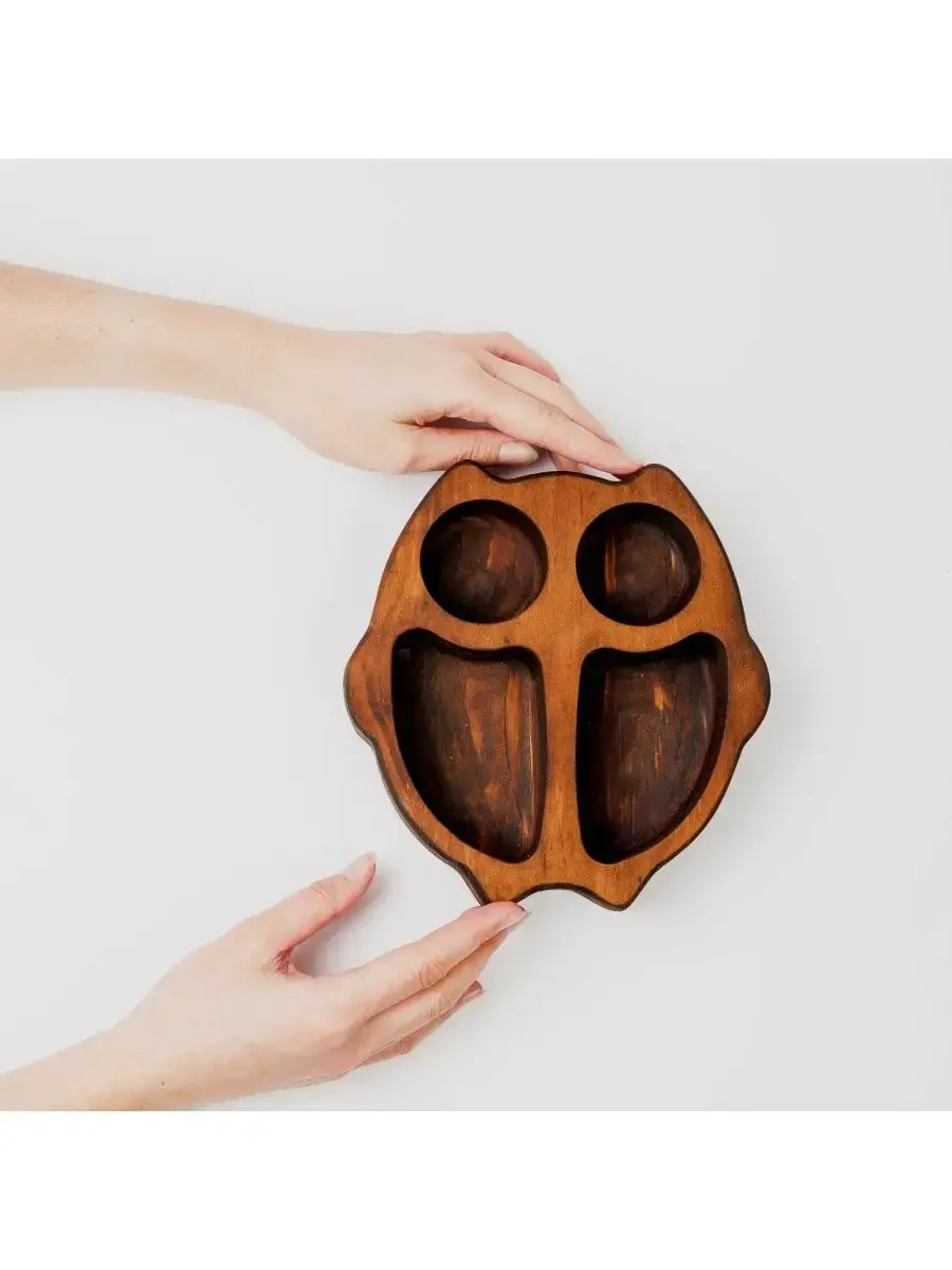 Менажница "сова" из Сибирского кедра ручной работы для кухни. Многие хозяйки мечтают, чтобы ее семейный обед или праздничный ужин был таким, как в престижном дорогом ресторане, поэтому озадачиваются сервировкой и красивой подачей блюд. В этом случае можно воспользоваться нашей новинкой - менажница для подачи блюд!Так что же такое менажница?Слово французского происхождения, от melanger – «смешивать», то есть в буквальном смысле менажница – это тарелка, на которой смешаны разные блюда.Наша экологичная посуда из дерева придется всем по душе. Деревянная менажница для сервировки обладает следующими преимуществами: красивый узор древесины, очень прочная, натуральная, долговечна и подходит для различных блюд. А антибактериальные свойства Сибирского кедра привлекают ценителей чистоты. Менажница из дерева станет отличным подарком на Новый год, день рождения и новоселье.Менажница подходит для горячих и холодных блюд, для закусок и для фруктов. Возможно наличие сучков. Идеальная шлифовка позволяет изделию быть очень гладким. Менажница пропитана натуральным маслом, которое, необходимо смыть в теплой проточной воде перед использованием. Размеры менажницы: Длина 190 мм, Ширина 175 мм, Высота 45 мм, Вес 305 грамм.