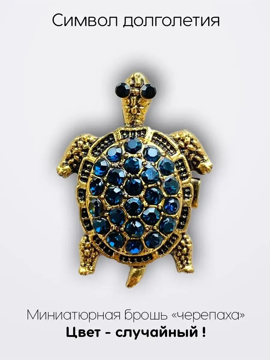 Миниатюрная брошь "Черепаха" - это отличный подарок для женщины, бабушки или дочери. Брошь прекрасно дополнит любой образ. Черепаха – это символ постепенного продвижения вперед достижения цели и долголетия. Это земноводное смелое и умное. Детеныши черепах продвигаются в сторону моря и находят его, так как имеют завидное упорство. За эти качества животное и заслужило уважение. Символ с его изображением и значением помогает человеку не останавливаться на жизненном пути, а в случае опасности уберегает и подсказывает выход из возникшей ситуации. Дорогие покупатели! Обратите внимание: цвет броши может отличаться от фото, вы получите одну брошь случайного цвета. Варианты цвета: Золото, Серебро. Варианты цвета страз: Белый, Красный, Бежевый, Розовое золото, Зелёный, Синий и Чёрный. Состав: бижутерный сплав, стразы. Ширина: 2 см. Длина: 2,6 см. Высота: 1 см. Застежка: французский замок.
