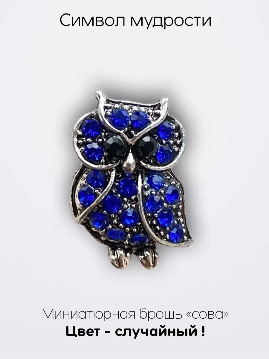 Миниатюрная брошь "Сова" - это отличный подарок для женщины, бабушки или дочери. Брошь прекрасно дополнит любой образ. Практически во всех культурах Мира сова считается символом мудрости и знаний. Она помогает человеку глубже понять мир, накопить новые знания, раскрыть интуицию. Считается, что все это делает человека мудрее и помогает ему принимать правильные выборы в жизни, что ускоряет путь к счастью. Дорогие покупатели! Обратите внимание: цвет броши может отличаться от фото, вы получите одну брошь случайного цвета. Варианты цвета: Золото, Серебро. Варианты цвета страз: Белый, Красный, Бежевый, Розовое золото, Зелёный, Синий и Чёрный. Состав: бижутерный сплав, стразы. Ширина: 1,2 см. Длина: 2 см. Высота: 1 см. Застежка: французский замок.