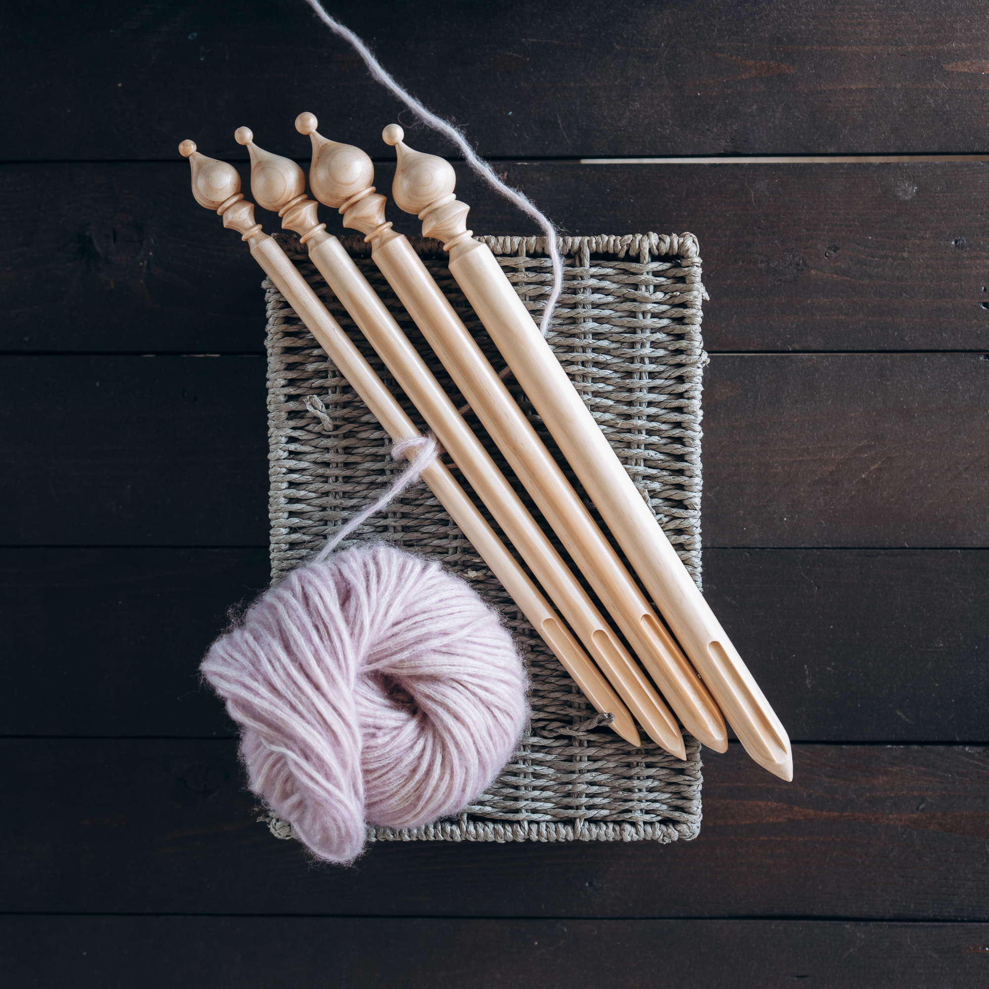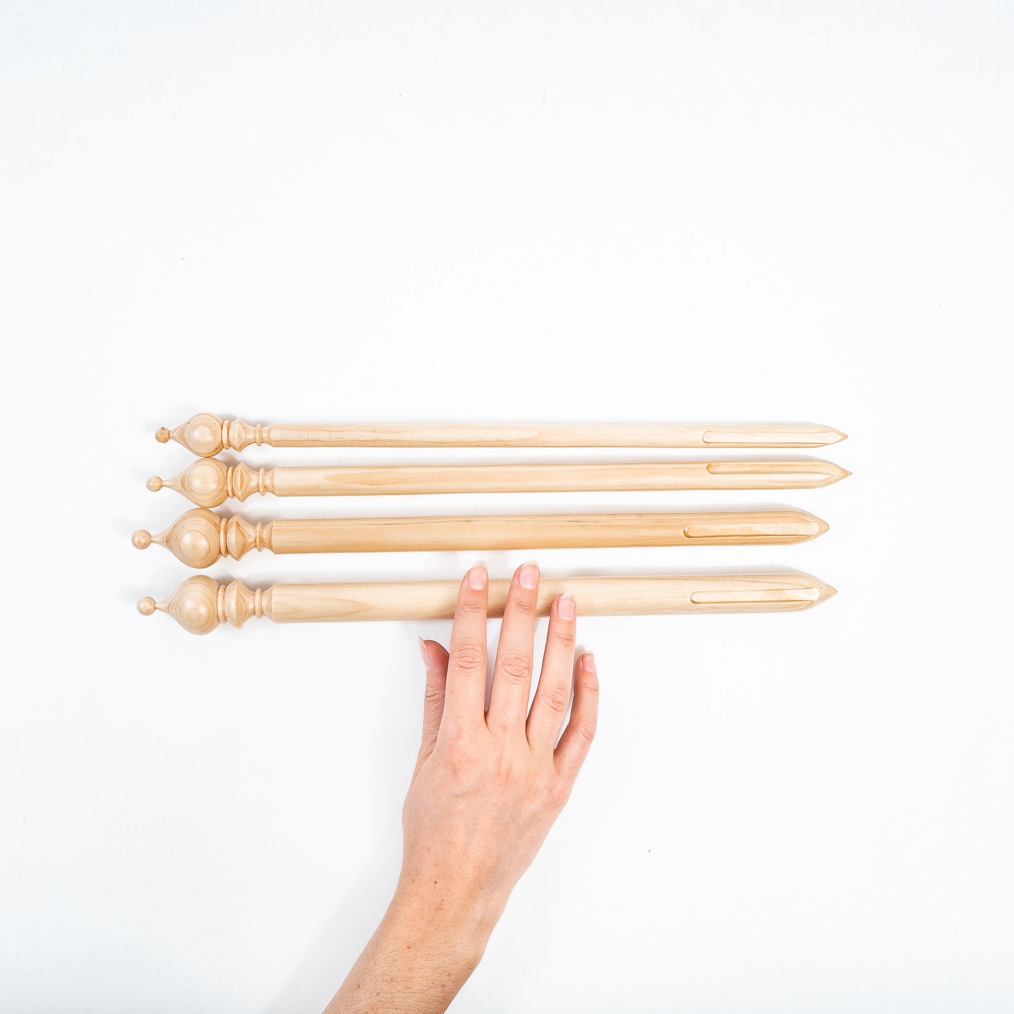Для облегчения перуанского вязания мы специально изготовили брумстики. Выполнены они из древесины сибирского кедра со специальной прорезью, для легкого снимания петель.