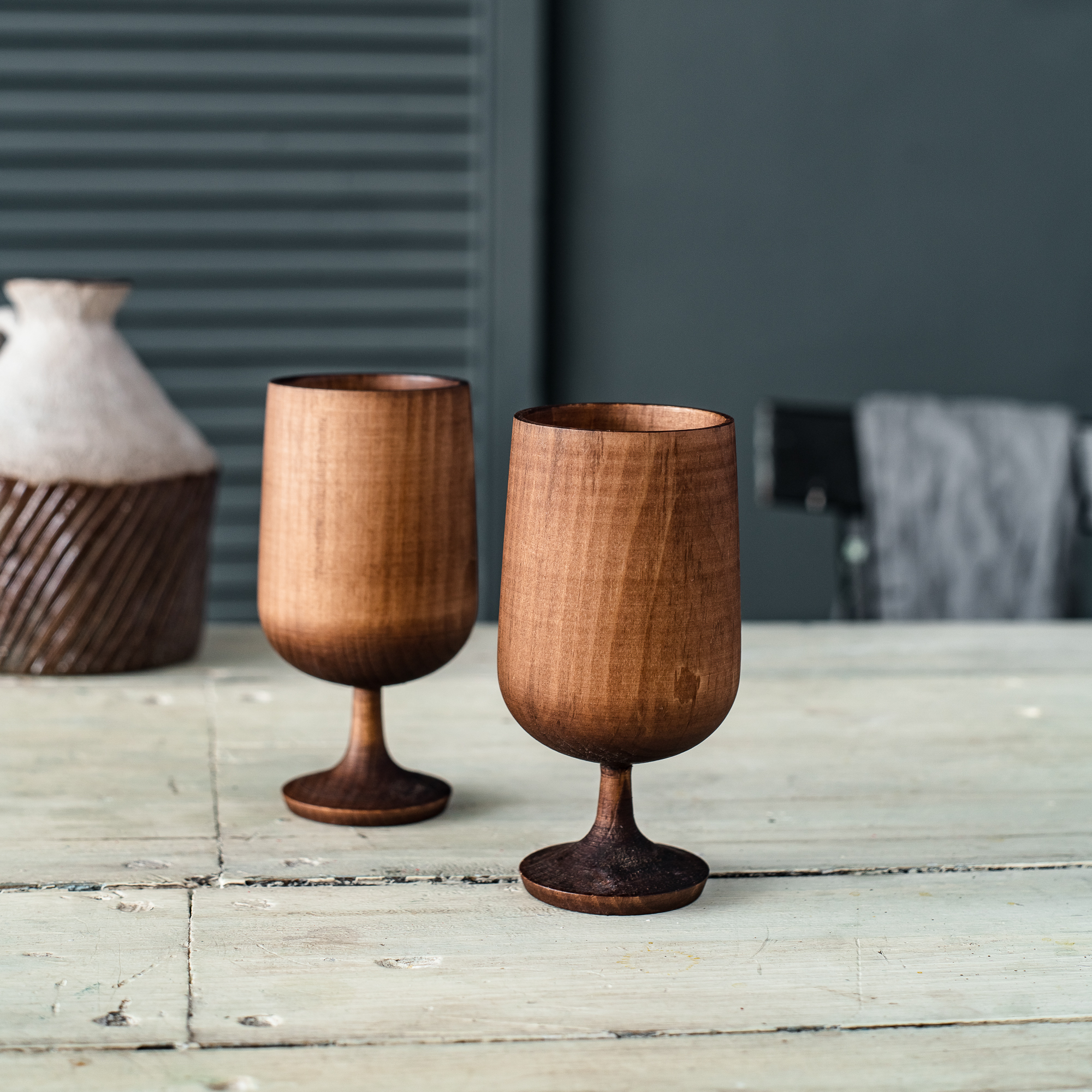 Набор оригинальных деревянных бокалов для вина ручной работы из древесины Сибирского кедра.