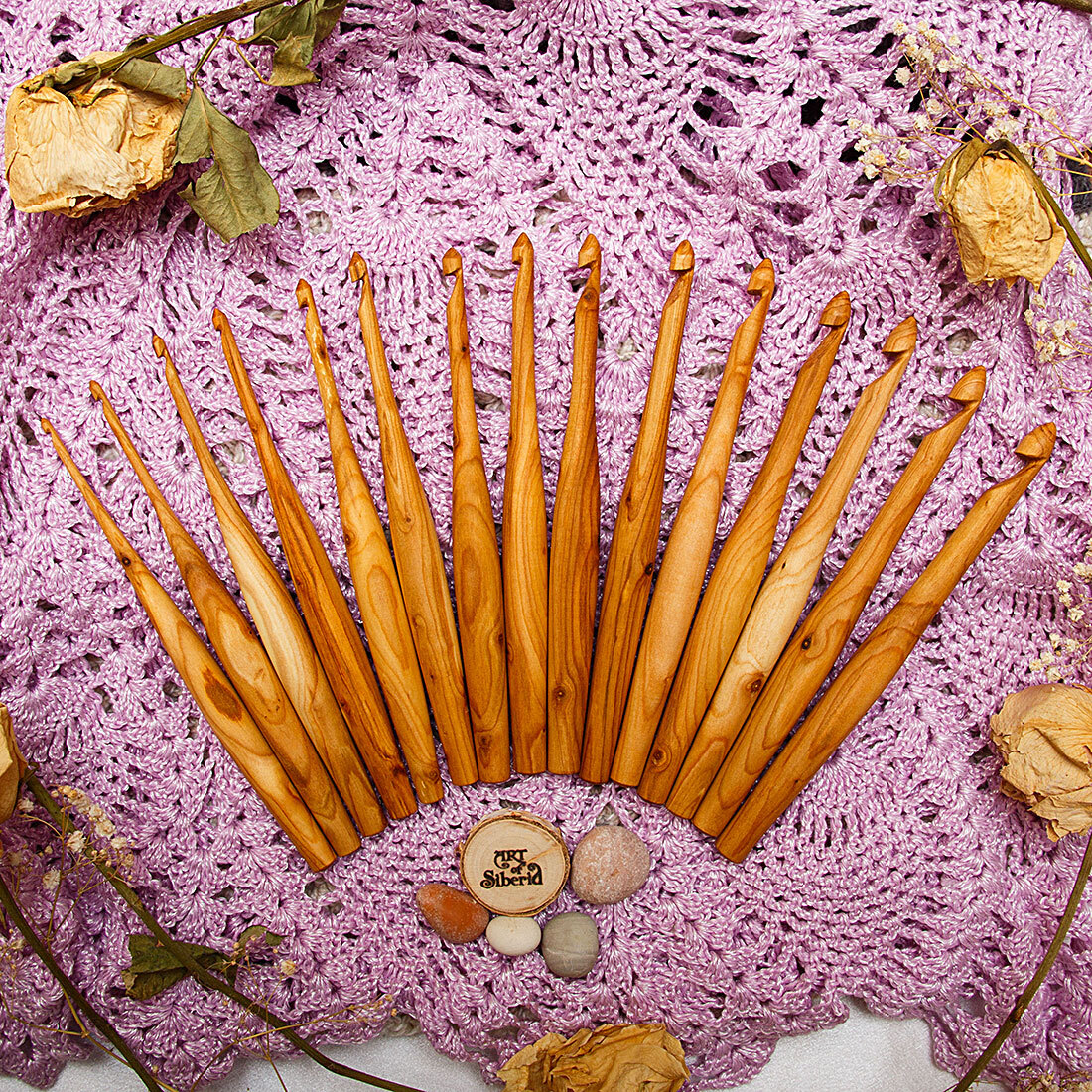 Легкие, приятные на ощупь, эргономичные, тщательно отполированы! Покрыты экологически чистым пчелиным воском с льняным маслом!!!Широкий размерный ряд помогает создавать различные изделия из любой пряжи!!!Прекрасный подарок рукодельнице!