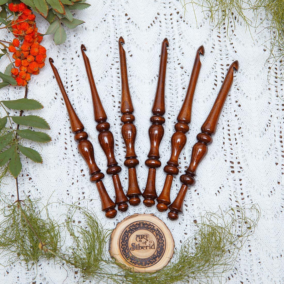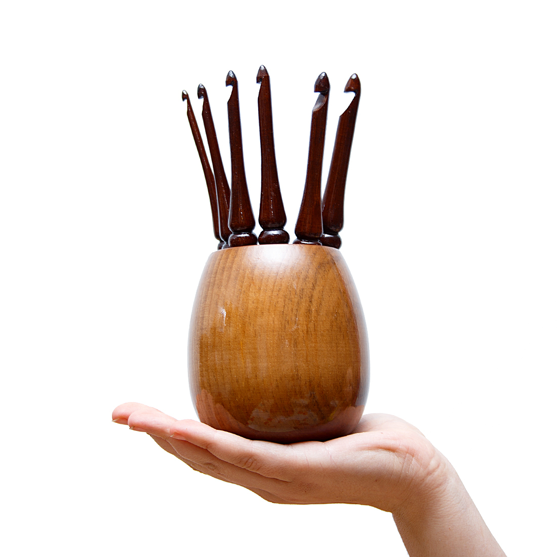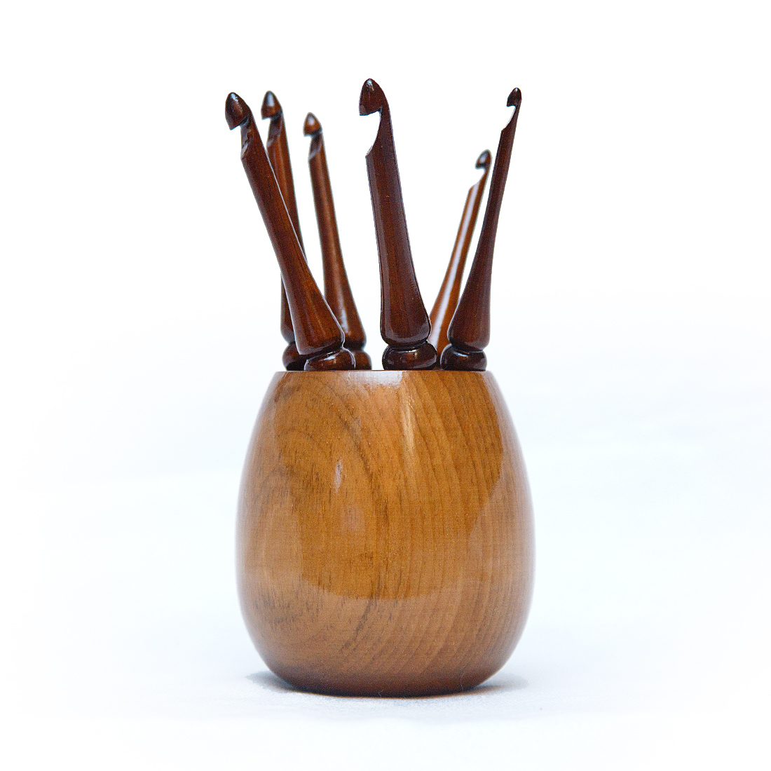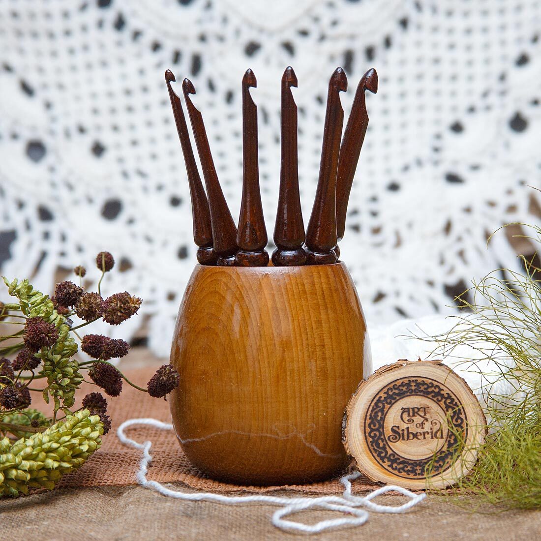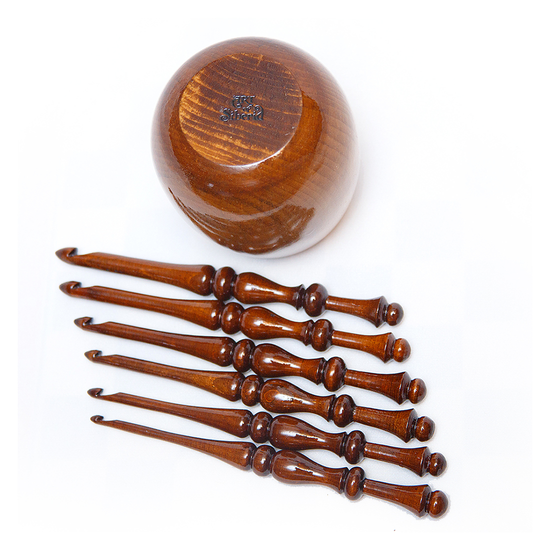 Набор крючков и ваза для хранения из Сибирского Кедра! Легкие, приятные на ощупь, эргономичные, тщательно отполированы и покрыты лаком! Крючок – древний инструмент женского рукоделия. Маленький русский крючок также может стать хорошим подарком для рукодельницы, для дочери, как по прямому назначению, так и в виде сувенира или украшения в интерьере, а так же как деталь костюма для кукол в русском наряде.