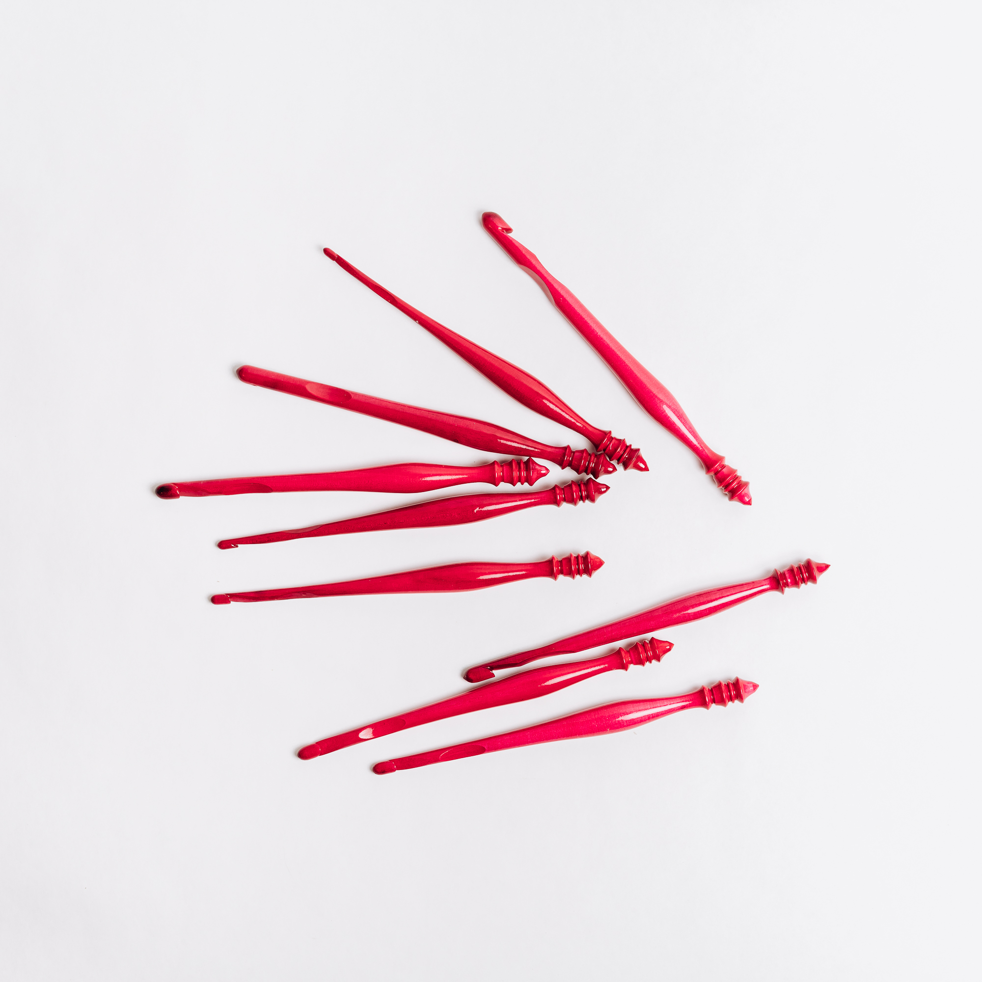 Легкие, приятные на ощупь, эргономичные. Набор крючков отполирован таким образом, что на нем не оставалось шероховатостей, зазубрин и любых других неровностей, которые могут помешать скользить нити при вязании. Также, он покрыт специальным лаком. А яркая окраска поможет поднять настроение!