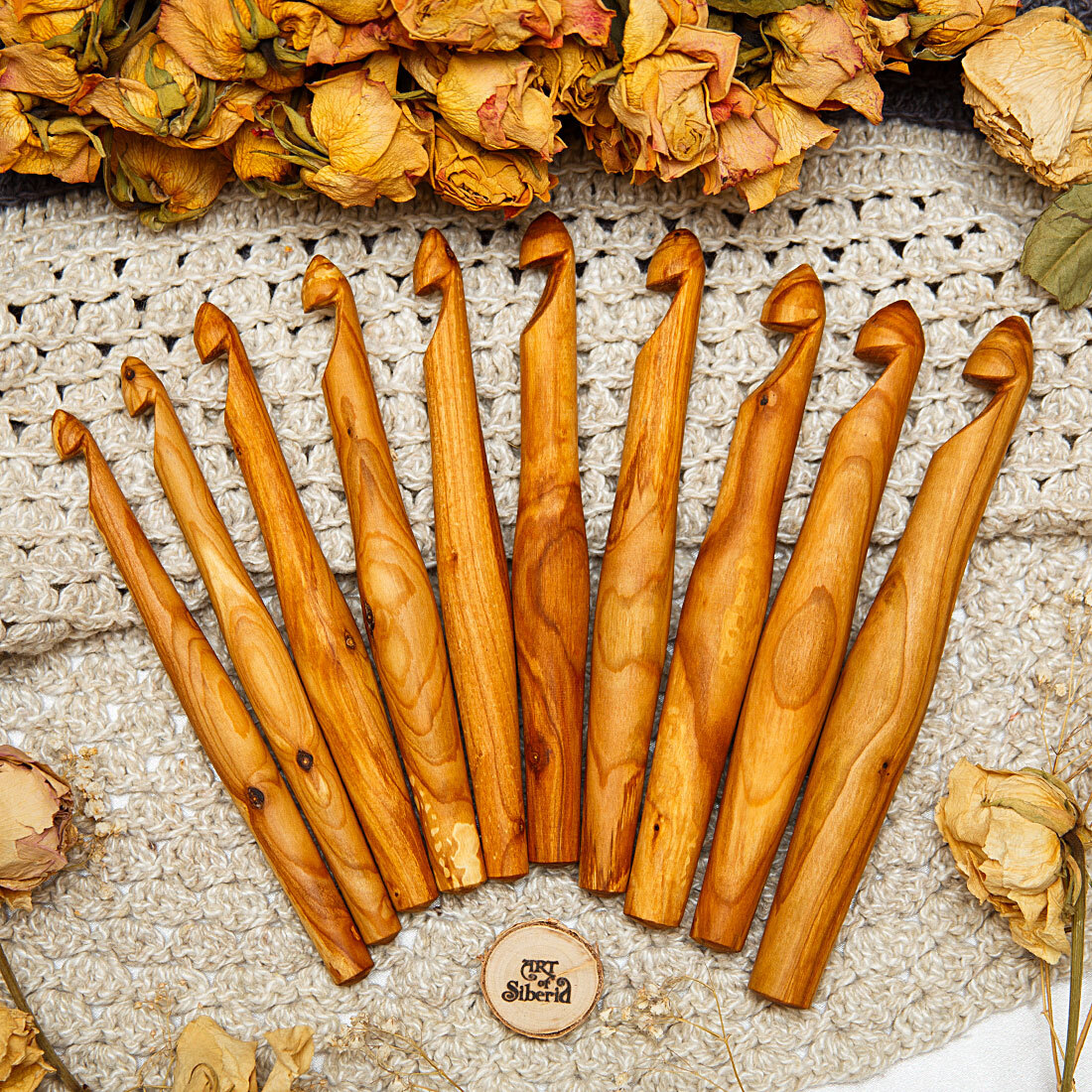 Набор деревянных крючков для вязания 10 шт (11-20 мм).