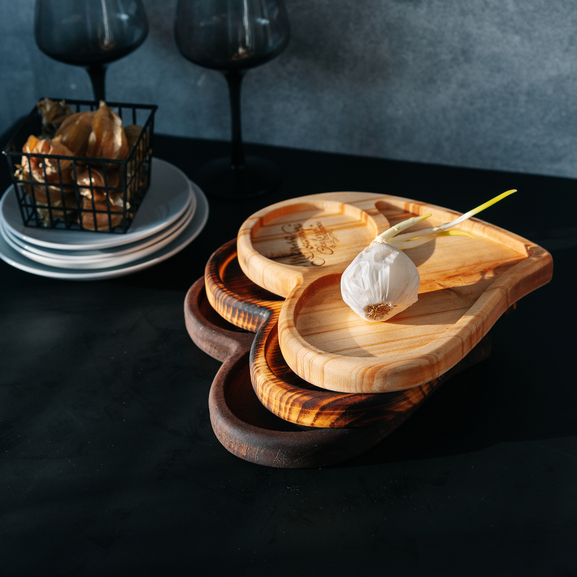 Набор деревянных менажниц из кедра для подачи блюд и закусок с гравировкой "тепло внутри-сказочно снаружи". Любителям натуральности придется по душе наша деревянная менажница, имеющая такие плюсы, как красивый узор древесины, не бьется, натуральна, долговечна и подходит для различных блюд. А антибактериальные свойства кедра привлекают ценителей чистоты. Подходит для любых видов закусок! Возможно наличие сучков. Пропитана нашим составом на основе растительного масла, кедровой смолы и пчелиного воска.