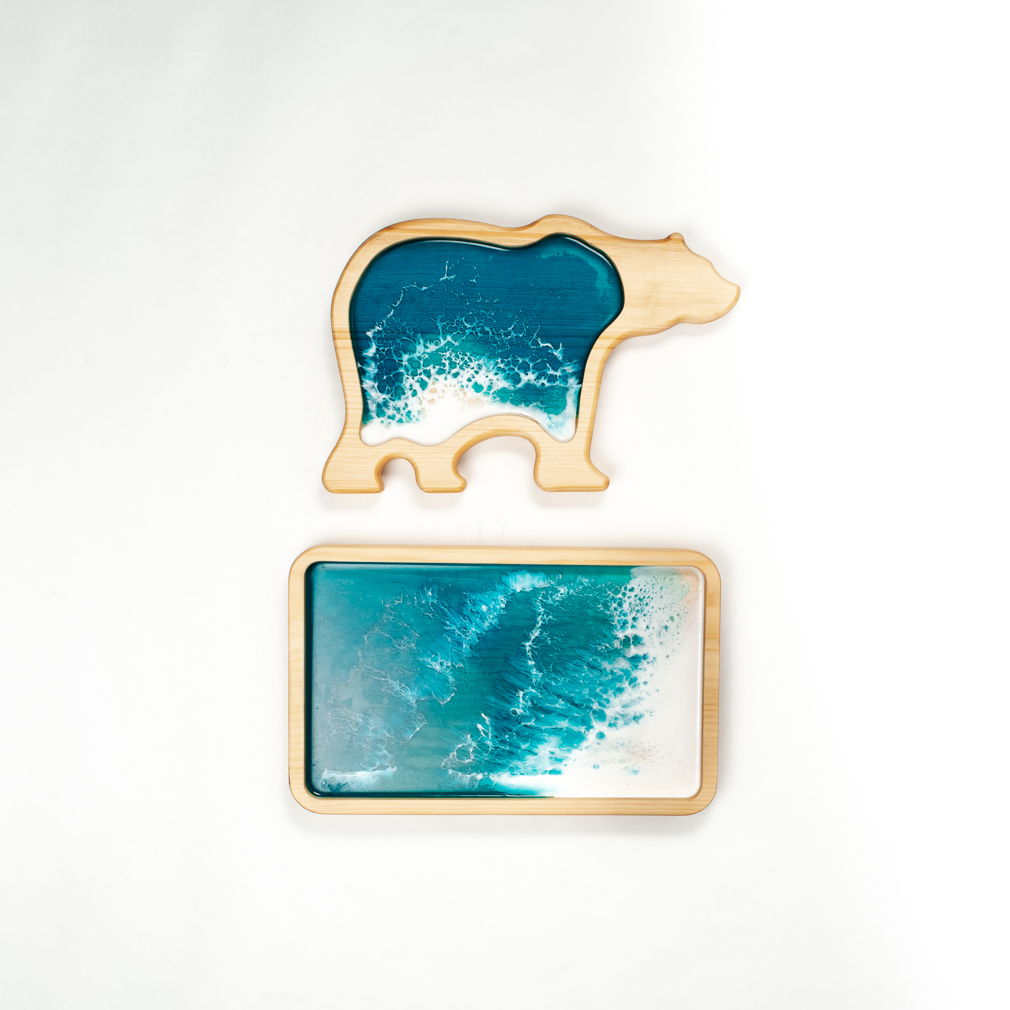 Набор деревянных менажниц из кедра для подачи блюд и закусок "мишка" и "поднос".