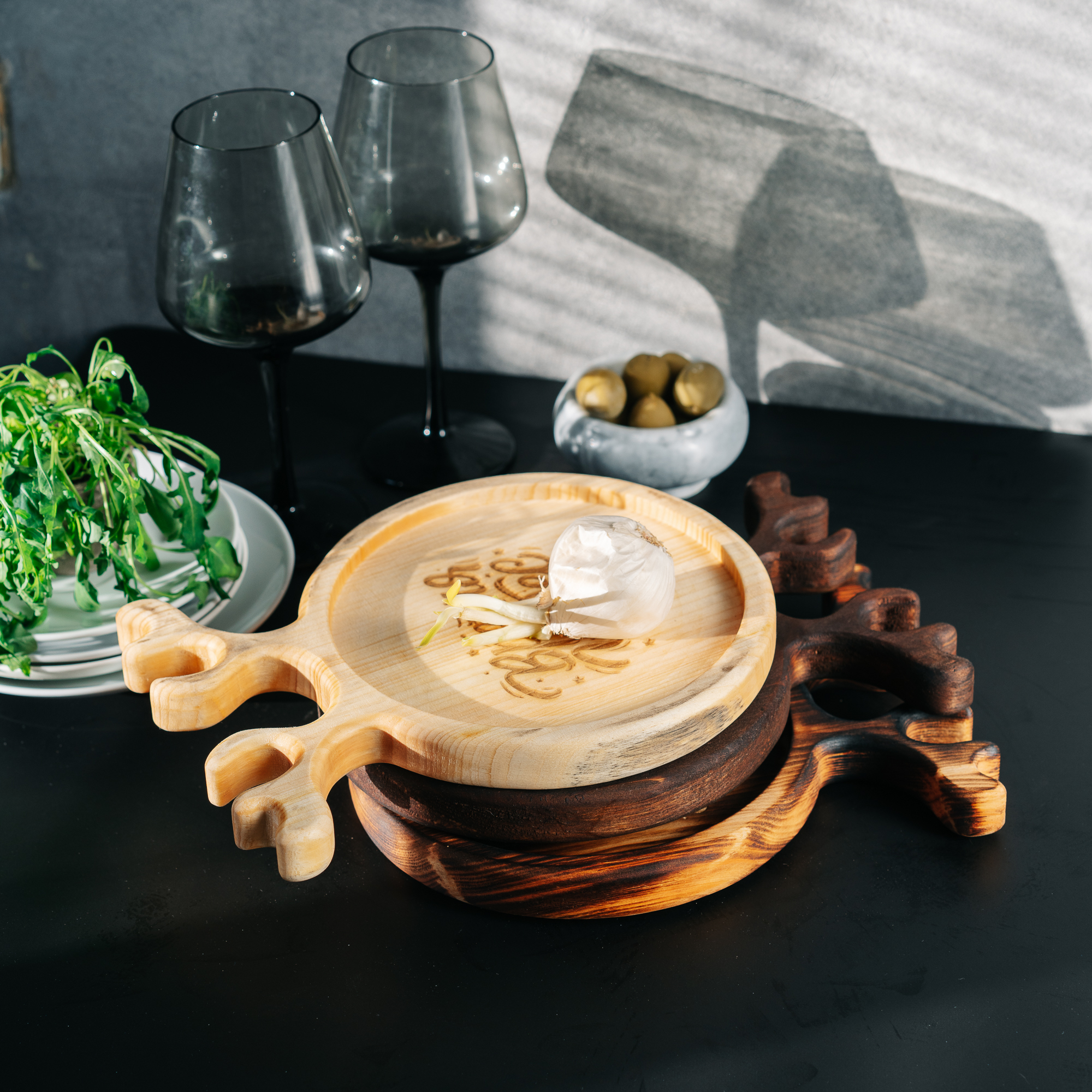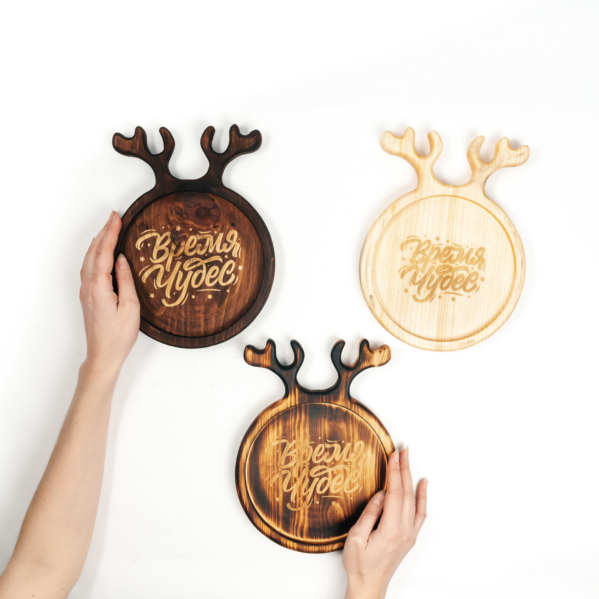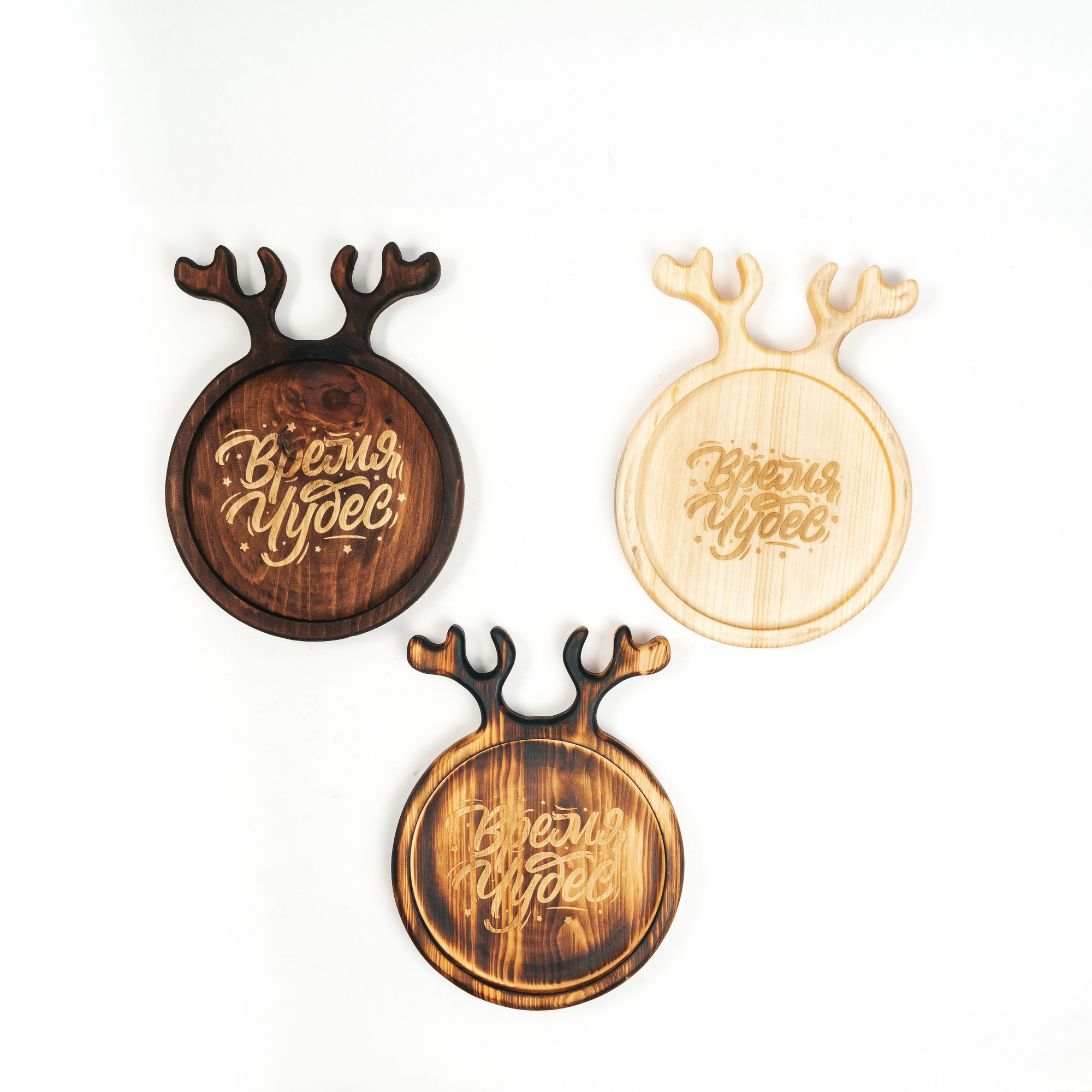 Набор деревянных менажниц из кедра для подачи блюд и закусок с гравировкой "Время чудес".