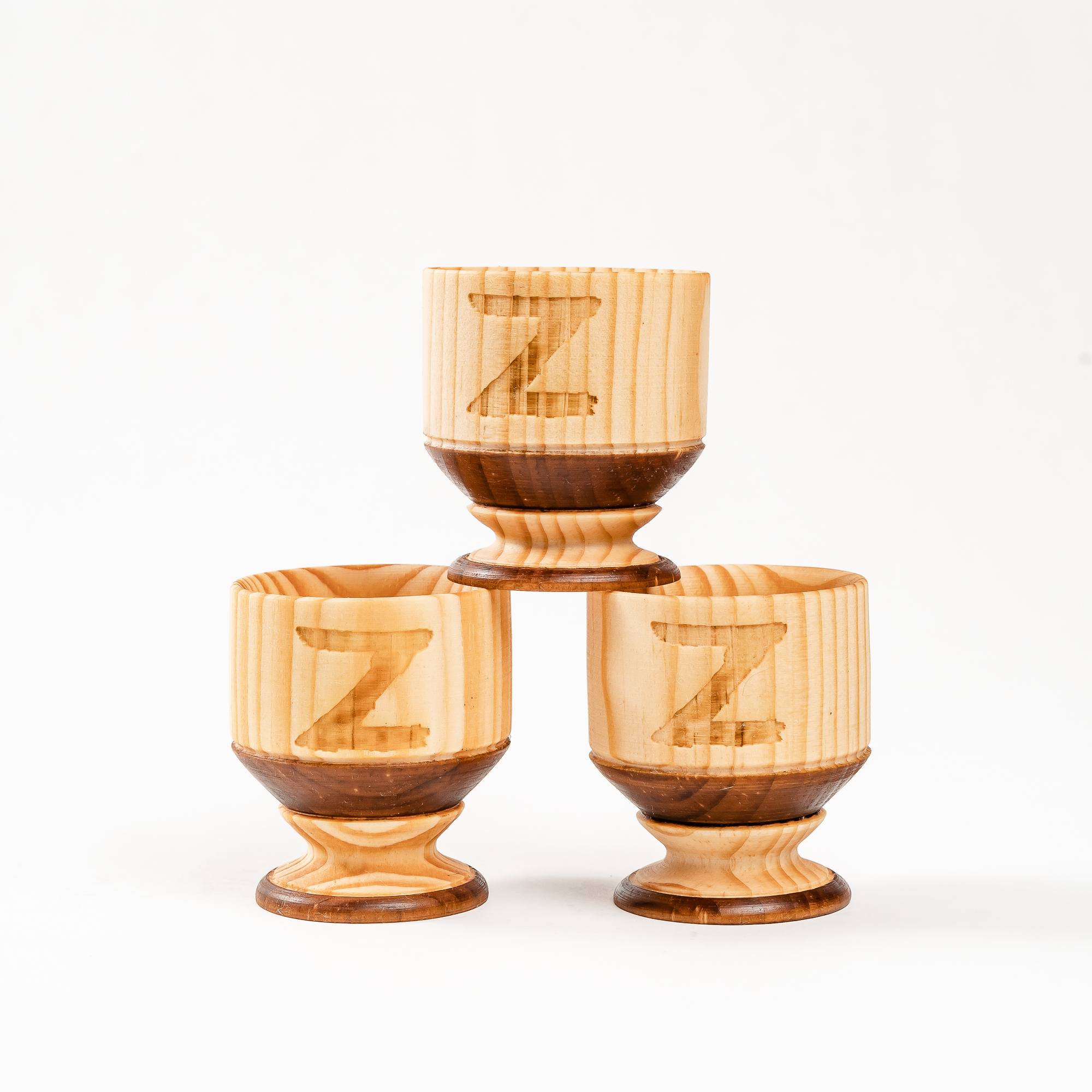 Набор деревянных рюмок (стопок, шотов) из древесины сибирского кедра, набор 3 штук. RN16