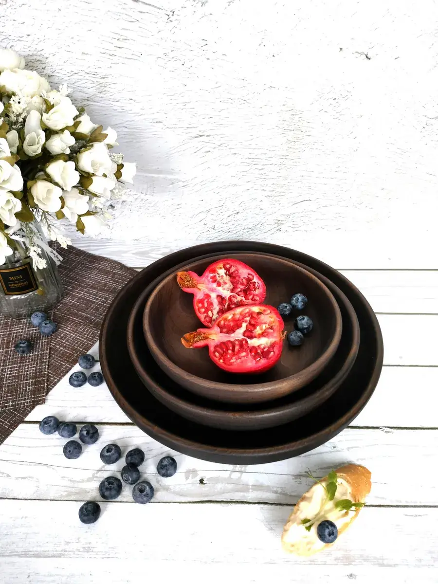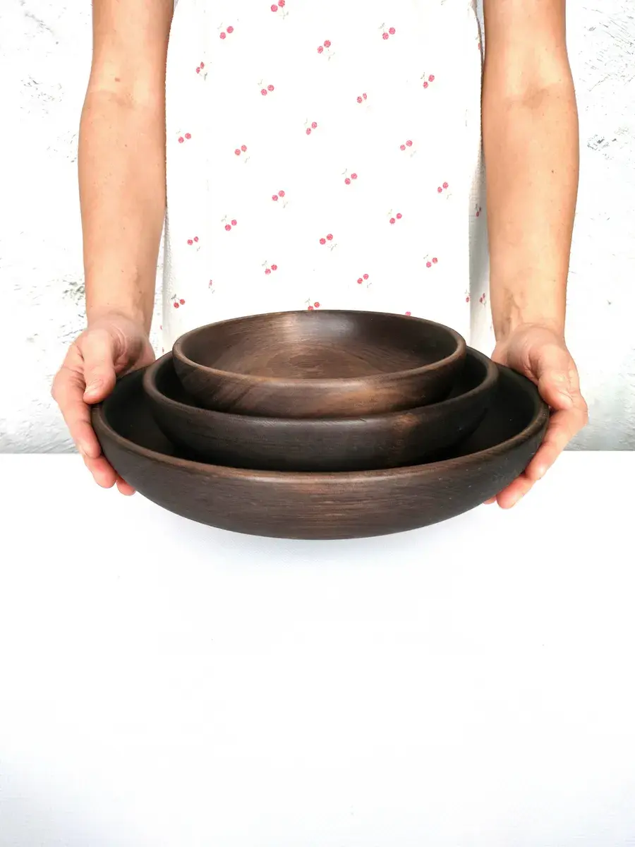 Набор тарелок из цельного массива кедра. Наша посуда из кедра имеет красивую текстуру, приятный оттенок, выделяет тонкий аромат, дезинфицирующий воздух помещений. Она обладает бактерицидными, антимикробными свойствами, аромат кедра способен оздоравливать воздух, придавать ему целебные качества. Велико санитарно-гигиеническое и лечебно-профилактическое действие кедровой посуды. Покрыта составом из пчелиного воска, кедровой смолы и растительного масла. Пригодна для пищевых продуктов, как для холодной, так и для горячей пищи. Абсолютно экологичный продукт. Перед использованием обязательно промыть теплой проточной водой, чтоб смыть остаткипокрытия. Изделие может стать чуть светлее. Для протирания использовать бумажные или тканевые полотенца. Размеры: 1). диаметр 30 см., высота 5,5 см., вес 600 г., глубина 4 см., 1500 мл..