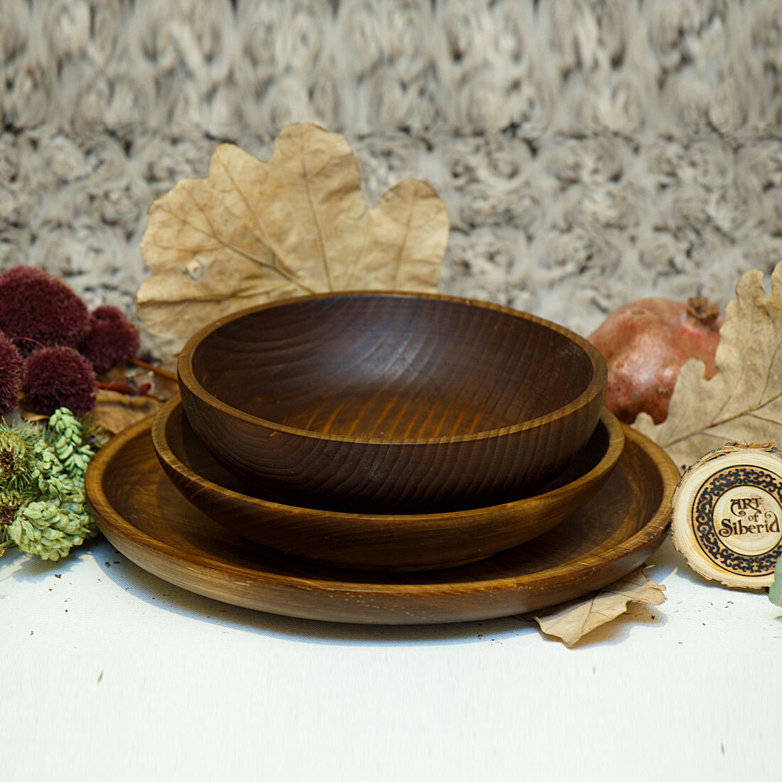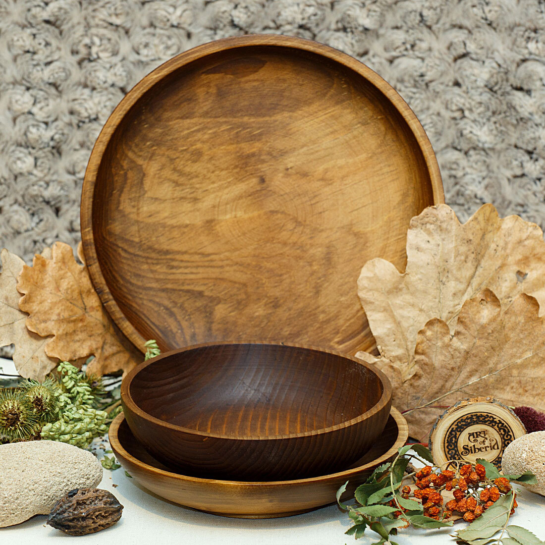 Ручной работы из натурального дерева Сибирской Пихты! ВОЗМОЖНО НАЛИЧИЕ "ЖИВЫХ" СУЧКОВ! Уникальное дерево произрастающее на юге Кемеровской области и горном Алтае. Смола этого дерева имеет антисептические и лечебные свойства. Именно из этого дерева производят знаменитое пихтовое масло! Большинство из нас с вами - жители городов, окруженные бетоном, металлом и пластиком. И все чаще хочется среди этого скоростного ритма жизни остановиться и насладиться ароматом и теплым прикосновением натурального дерева. Нашу посуду: ложки, тарелки, подносы и прочие кухонные аксессуары из массива дерева можно не боясь использовать взрослым и детям в быту. Так как мы предъявляем высокие требования к их обработке, на первое место, наравне с красотой, выходит вопрос надежности и безопасности покрытия. Вся посуда, которая контактирует с едой, водой, покрывается специальным составом из пчелиного воска, растительного масла и кедровой смолы. В первую очередь, это делается для безопасности людей, которые будут ей пользоваться, а также для сохранения самого деревянного изделия. Перед пропиткой состав подвергается длительной термообработке (кипятится), в результате в нём отсутствуют вредные вещества и микроорганизмы, оно бактерицидно. Данный состав, попав в толщу древесины, под воздействием кислорода из воздуха полимеризуется, закупоривает поры древесины, делая её водонепроницаемой. Масло создаёт на поверхности изделия прочную и красивую плёнку, воск придает глянец готовым изделиям, а смола - приятный древесный аромат. А в целом этот состав не забивает поры, и дерево продолжает «дышать».Покрыт для придания цвета водной морилкой "дуб". Пропитан нашим составом на основе растительного масла, кедровой смолы и пчелиного воска. Перед использованием обязательно промыть теплой проточной водой, чтоб смыть остатки масла и морилки. Изделие может стать чуть светлее. Первое время возможно оставление следов от морилки, поэтому лучше для протирания использовать бумажные полотенца. При желании можно оставить натуральный оттенок древесины.