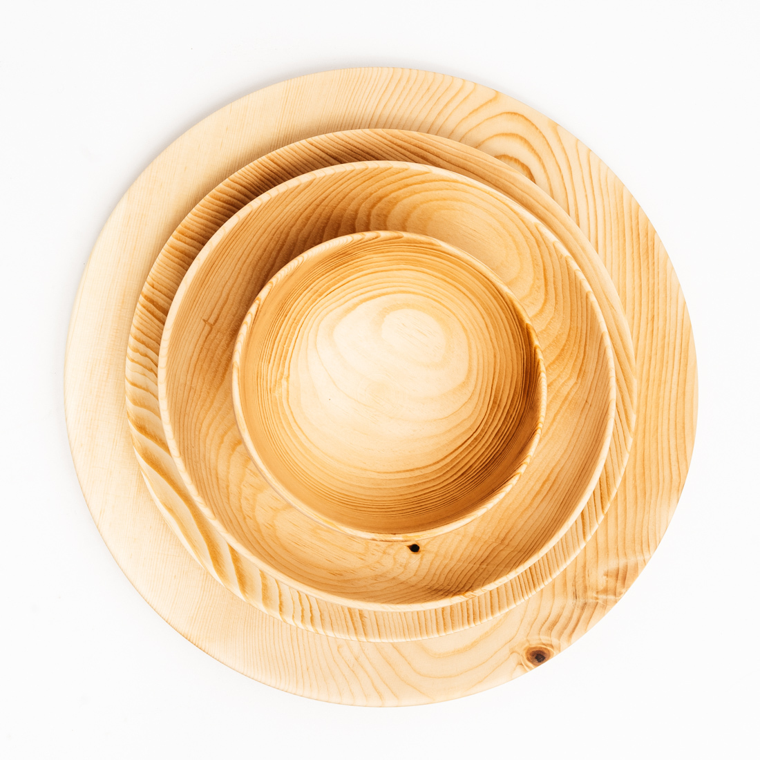 Набор деревянных тарелок + большое сервировочное блюдо ручной работы из цельного массива Сибирского Кедра!
