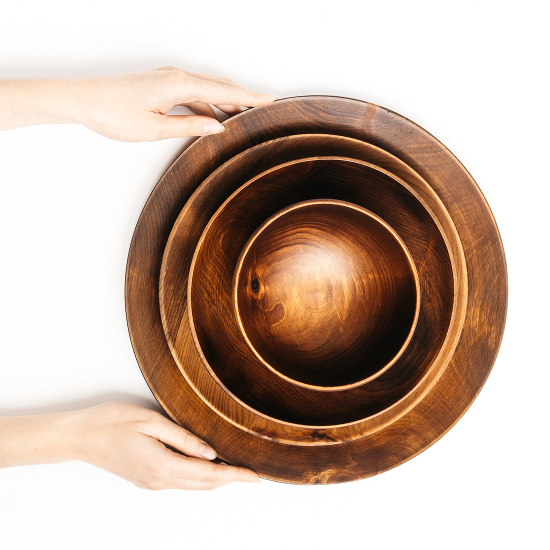 Набор деревянных тарелок + большое сервировочное блюдо ручной работы из цельного массива Сибирского Кедра!
