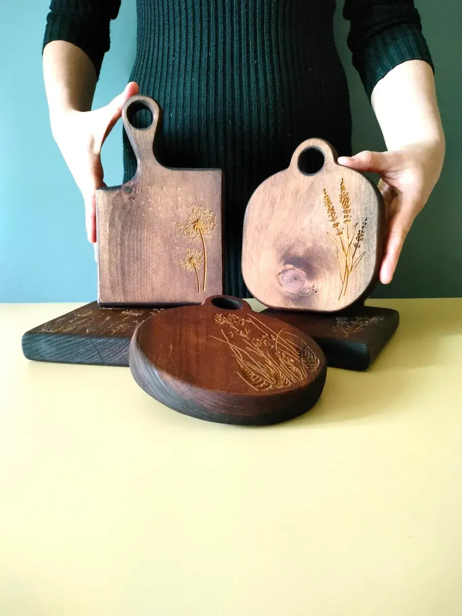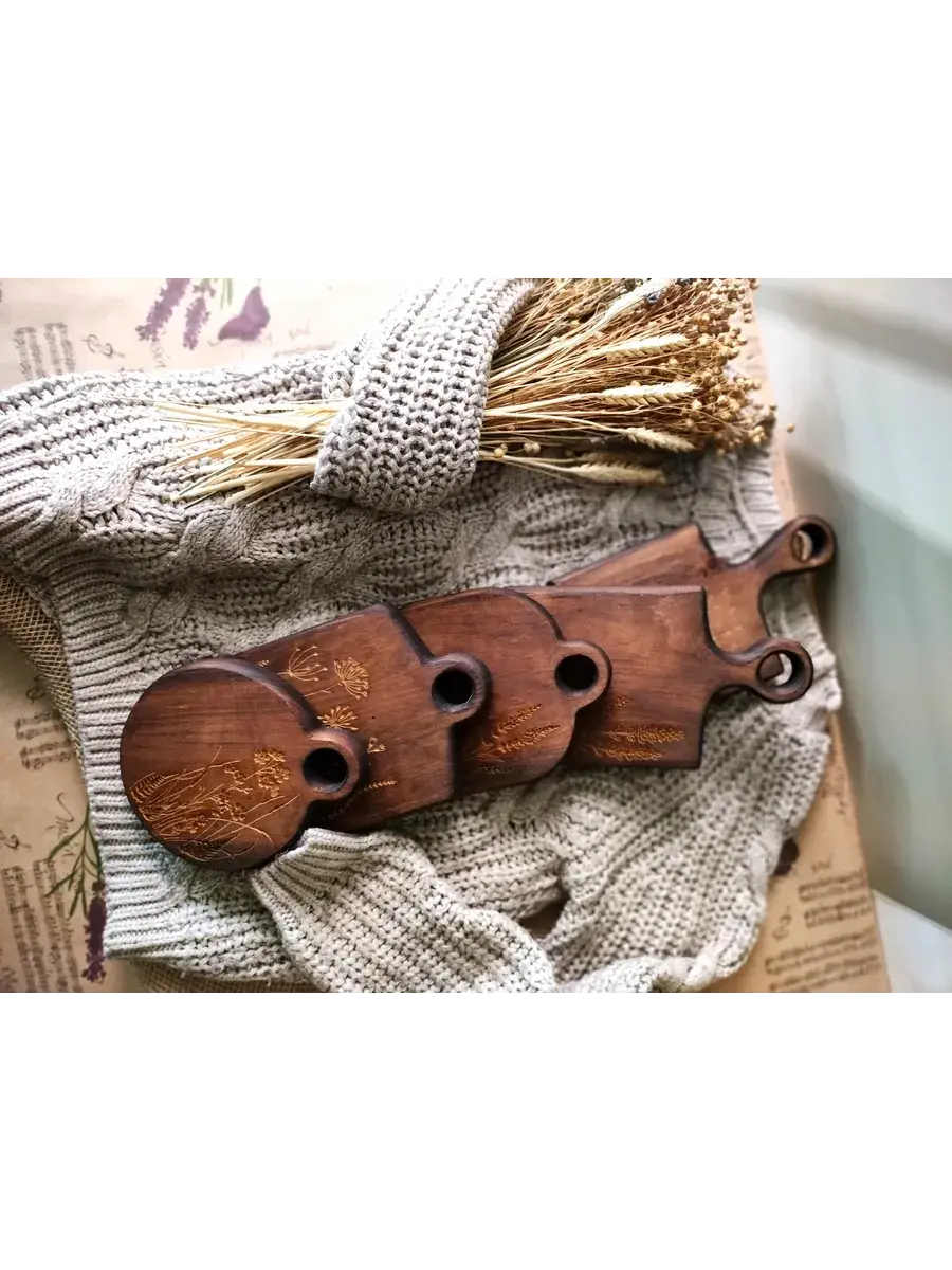 Набор деревянных разделочных досок из спила древесины сибирского кедра. Есть предметы, без которых не обойтись в домашнем хозяйстве. Разделочная доска – одна из них. Доски обработаны натуральным маслом с пчелиным воском, которое защищает дерево от внешних воздействий. Экологичные разделочные доски можно использовать для: сырого мяса, рыбы, хлеба, овощей и фруктов. Доски обладают массой положительных качеств: ножи не тупятся, доски из кедра долговечные, прочные, устойчивы к повреждениям и перепадам температуры. Подходят для разделывания больших кусков мяса, а самое главное, кедр обладает антибактериальными свойствами, и бактерии, попадая в волокна доски, не размножаются, а погибают. Доски имеют специальное отверстие, которое, пригодится для того, чтобы повесить доску на стену. Доски можно использовать в роли менажниц для подачи и сервировки блюд, они отлично впишутся в любой интерьер и будут дополнять его своей уникальностью и стилем. Станут отличным подарком для повара, любителя готовить, близкого человека или просто качественным универсальным подарком. Дорогие покупатели, просим Вас обратить внимание! Каждая деревянная доска из спила имеет уникальную форму, которая может незначительно отличаться от фотографии. Возможно наличие сучков. Не замачивать. Не использовать в посудомоечной машине. После использования тщательно просушивать бумажными полотенцами.