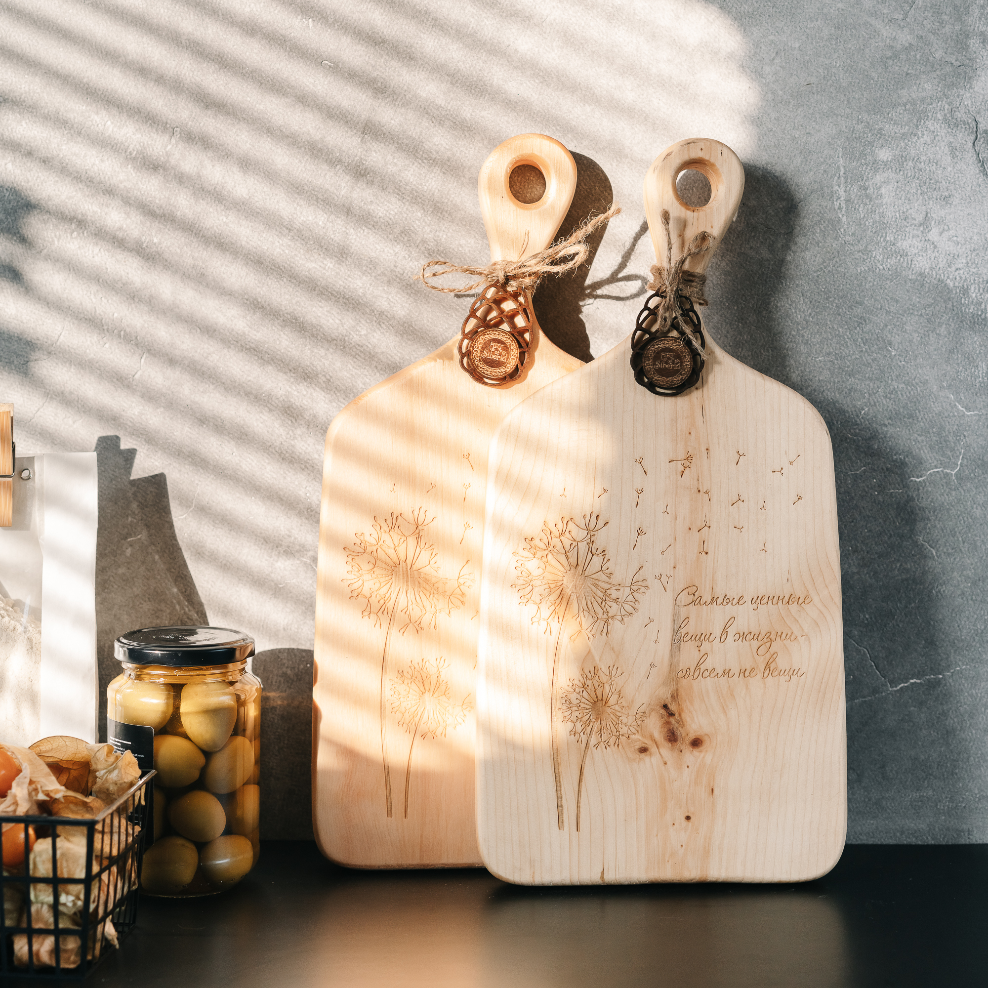 Набор из двух разделочных досок с гравировкой "Самые ценные вещи в жизни - совсем не вещи".