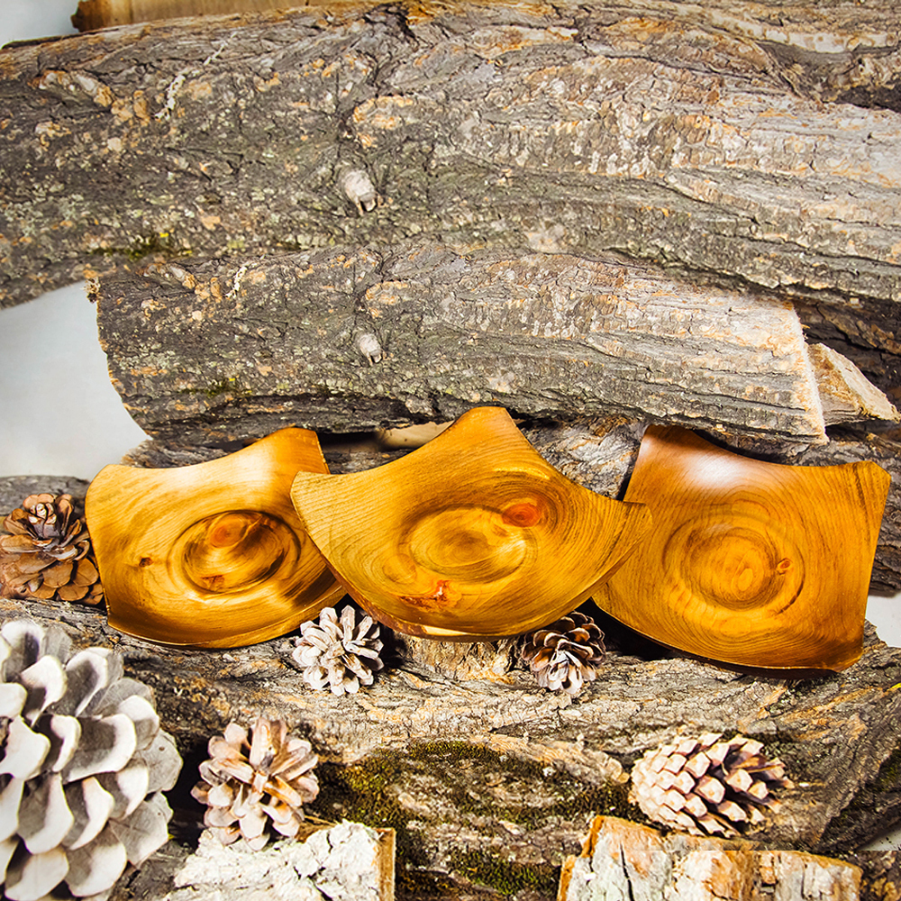 Тарелки и миски удобны для приема пищи и для ее хранения. Люди, пользующиеся такими тарелками, могут подтвердить, что еда сохраняет свежесть намного дольше: она не прокиснет и не покроется плесенью. Древесина кедра придаст пище особый аромат и вкус. И что немаловажно, кедр обладает дезинфицирующим свойством, и продукты в такой тарелке становятся полезней, насыщаясь фитонцидами кедра.