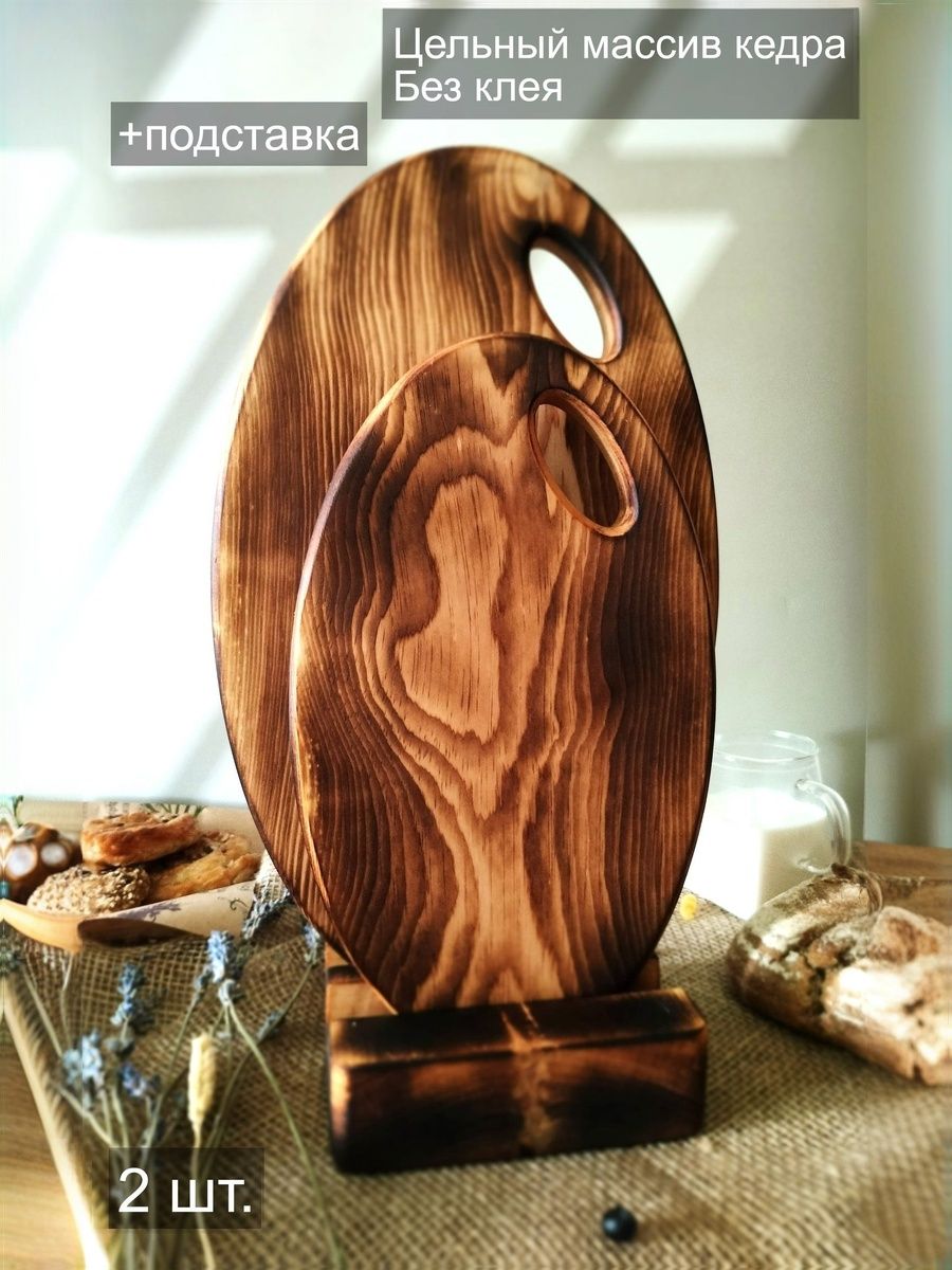 Набор деревянных разделочных досок из спила древесины сибирского кедра. Есть предметы, без которых не обойтись в домашнем хозяйстве. Разделочная доска – одна из них. Доски обработаны натуральным маслом с пчелиным воском, которое защищает дерево от внешних воздействий. Экологичные разделочные доски можно использовать для: сырого мяса, рыбы, хлеба, овощей и фруктов. Доски обладают массой положительных качеств: ножи не тупятся, доски из кедра долговечные, прочные, устойчивы к повреждениям и перепадам температуры. Подходят для разделывания больших кусков мяса, а самое главное, кедр обладает антибактериальными свойствами, и бактерии, попадая в волокна доски, не размножаются, а погибают. Доски имеют специальное отверстие, которое, пригодится для того, чтобы повесить доску на стену. Доски можно использовать в роли менажниц для подачи и сервировки блюд, они отлично впишутся в любой интерьер и будут дополнять его своей уникальностью и стилем. Станут отличным подарком для повара, любителя готовить, близкого человека или просто качественным универсальным подарком. Дорогие покупатели, просим Вас обратить внимание! Каждая деревянная доска из спила имеет уникальную форму, которая может незначительно отличаться от фотографии. Возможно наличие сучков. Не замачивать. Не использовать в посудомоечной машине. После использования тщательно просушивать бумажными полотенцами.