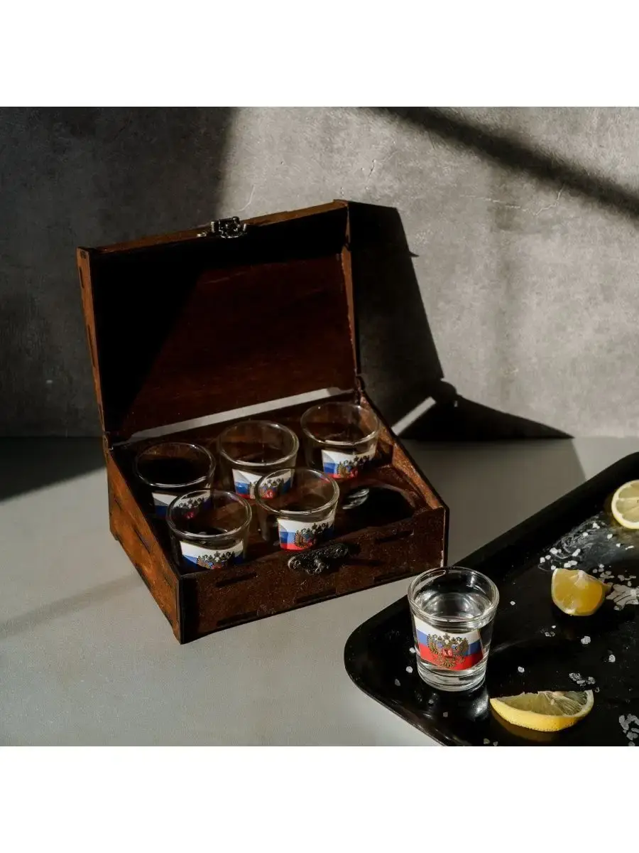 Набор рюмок с гравировкой "Россия" в подарочной упаковке – это отличный подарок на Новый год, день рождения или любой другой праздник. Рюмки изготовлены из прочного стекла прозрачного цвета, объем 50 мл.Благодаря своему дизайну рюмка будет отлично смотреться как на повседневном, так и на праздничном столе.Уникальная упаковка, служащая достойным облачением, не только избавит вас от необходимости продумывать процесс вручения подарка, но и позволит презентовать его максимально эффектно!Обработано специальным составом из масла и воска.