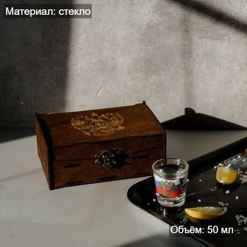 Набор рюмок с гравировкой "Россия" в подарочной упаковке – это отличный подарок на Новый год, день рождения или любой другой праздник. Рюмки изготовлены из прочного стекла прозрачного цвета, объем 50 мл.