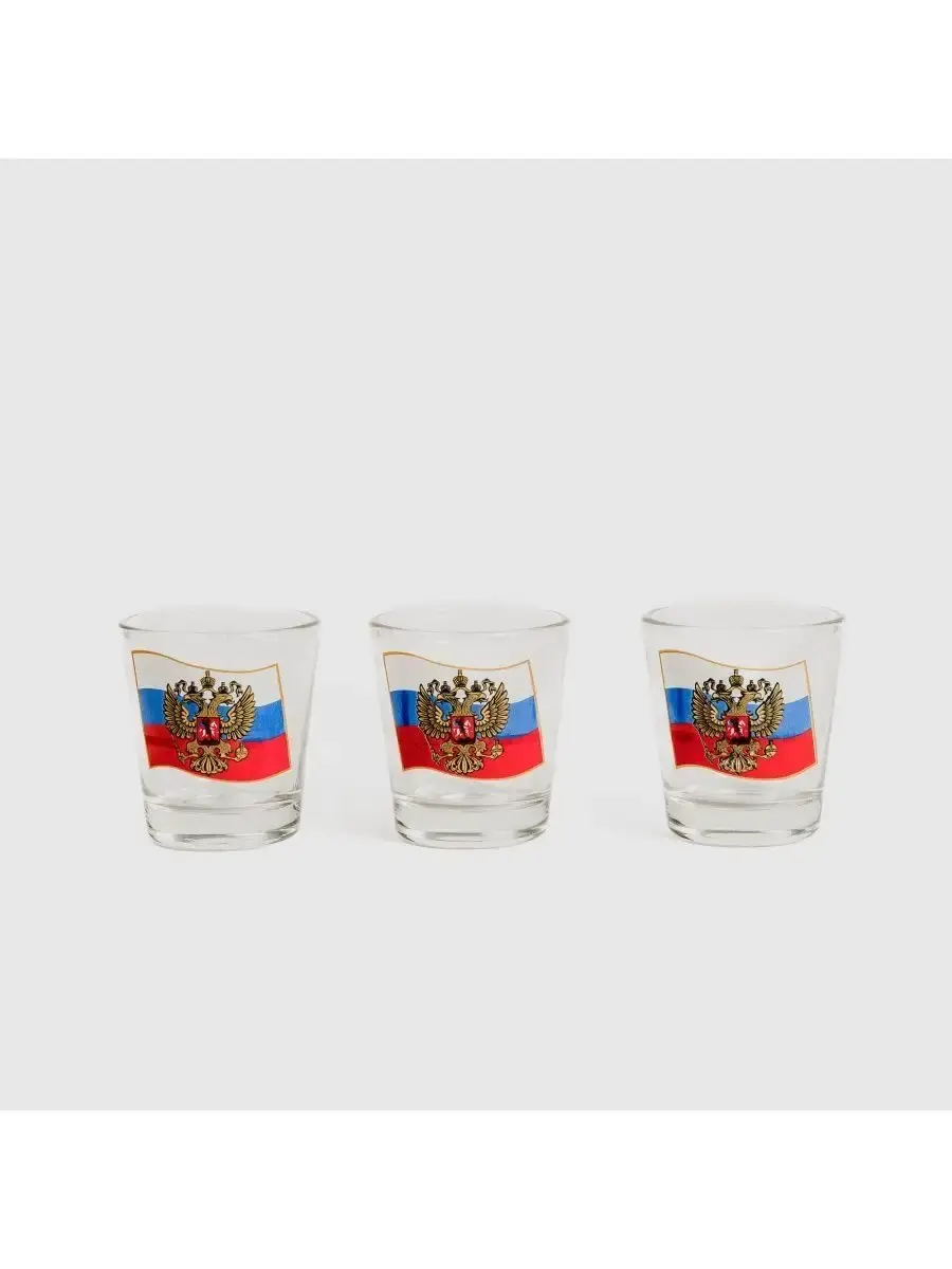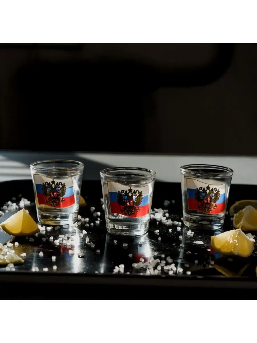Стопка, рюмка с флагом России объемом 50мл. Наши стопки украсят любой праздничный стол в Новый год, день рождения, 23 февраля и другие праздники. Стеклянная рюмка имеют цветную гравировку с символикой РФ. Посуда изготовлена из очень прочного стекла. Стопка отлично подойдет для водки, ликера, текилы и других крепких напитков. Можно использовать для горячих и холодных напитков. Стопка с гравировкой имеет широкое дно, что придает ей устойчивость, и удобную форму, её приятно держать в руке.