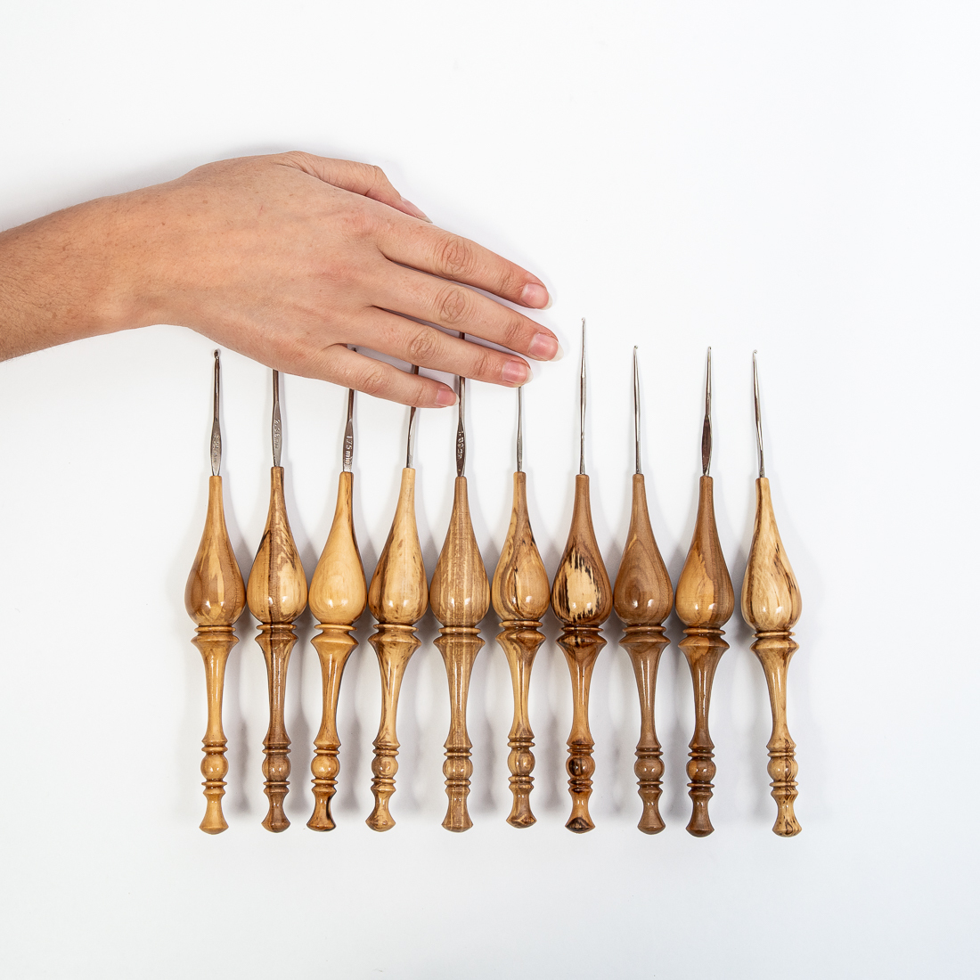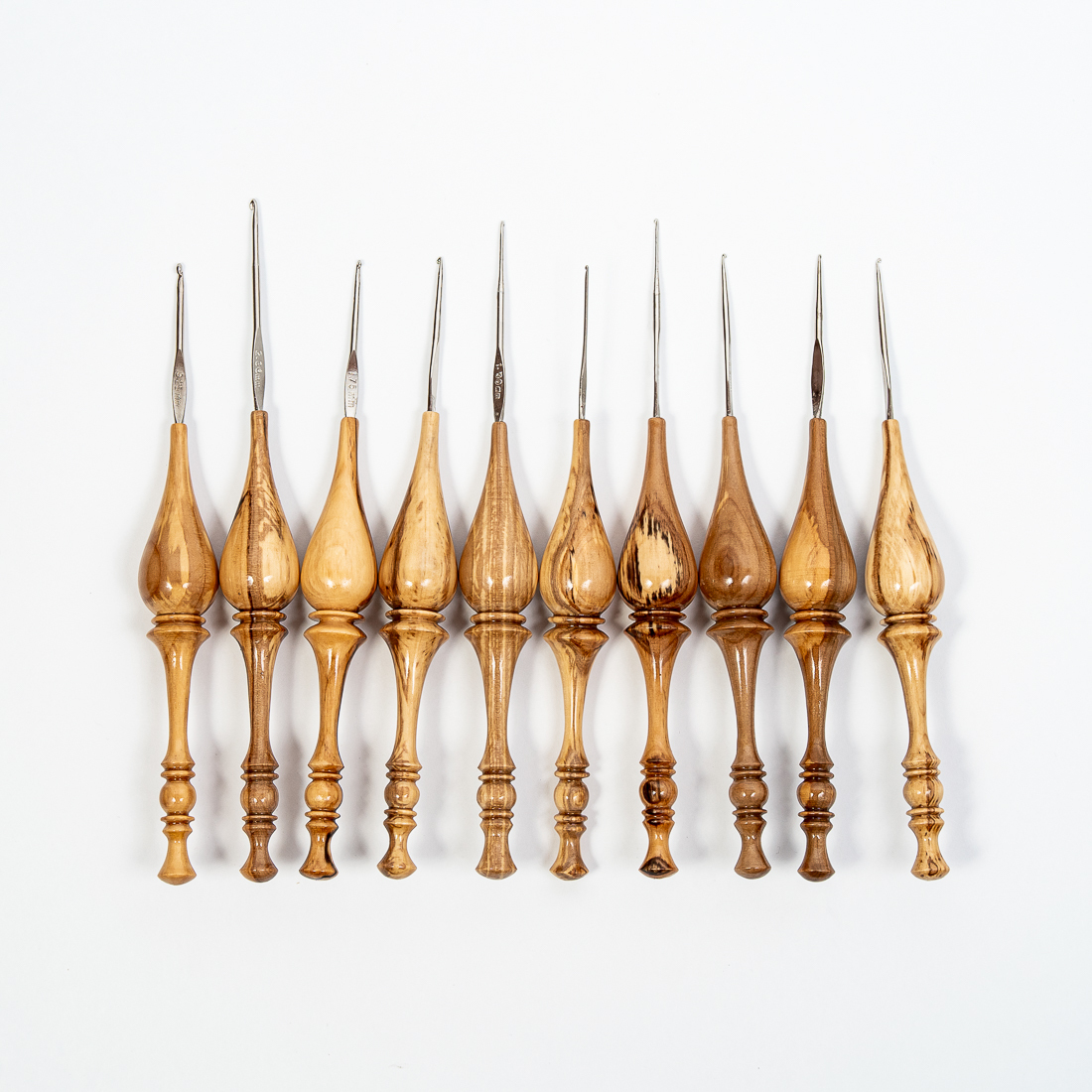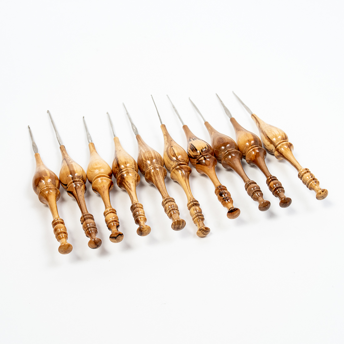 Набор железных крючков для вязания с деревянной ручкой из рябины (10 шт). KN20