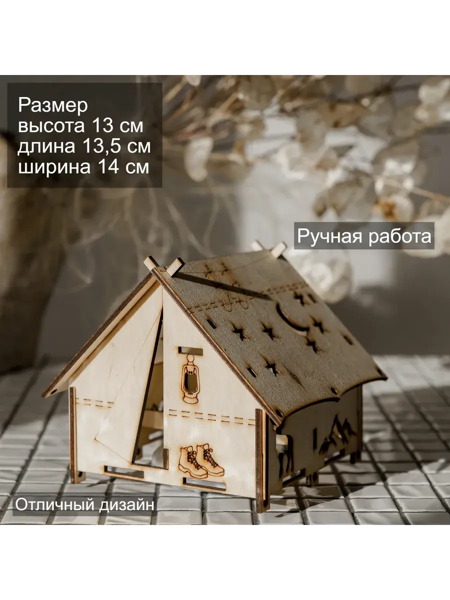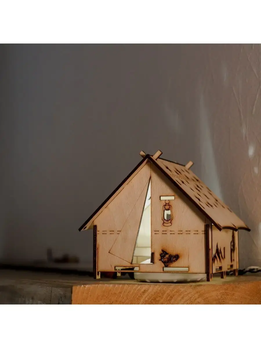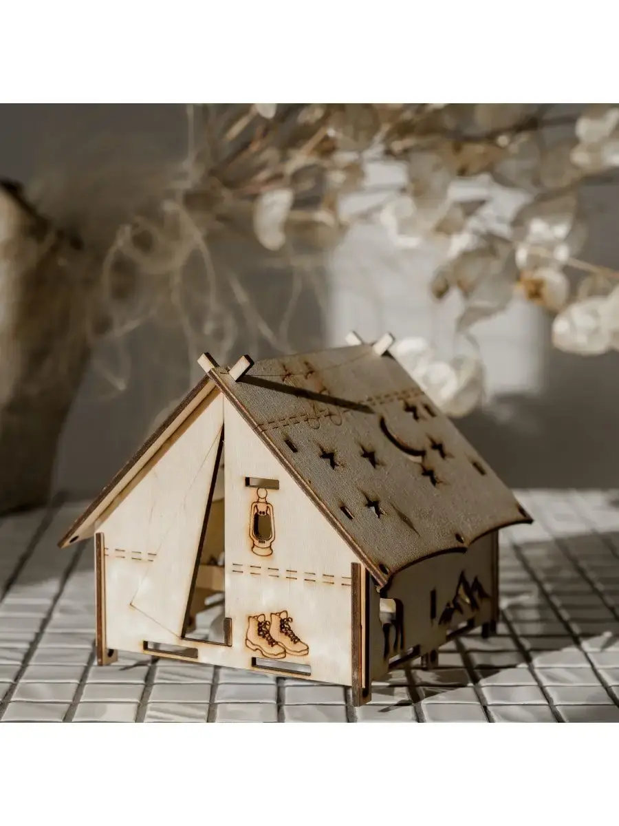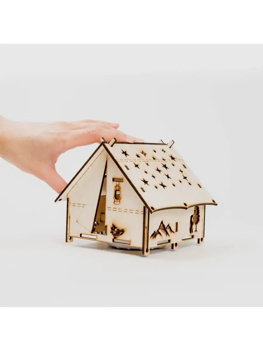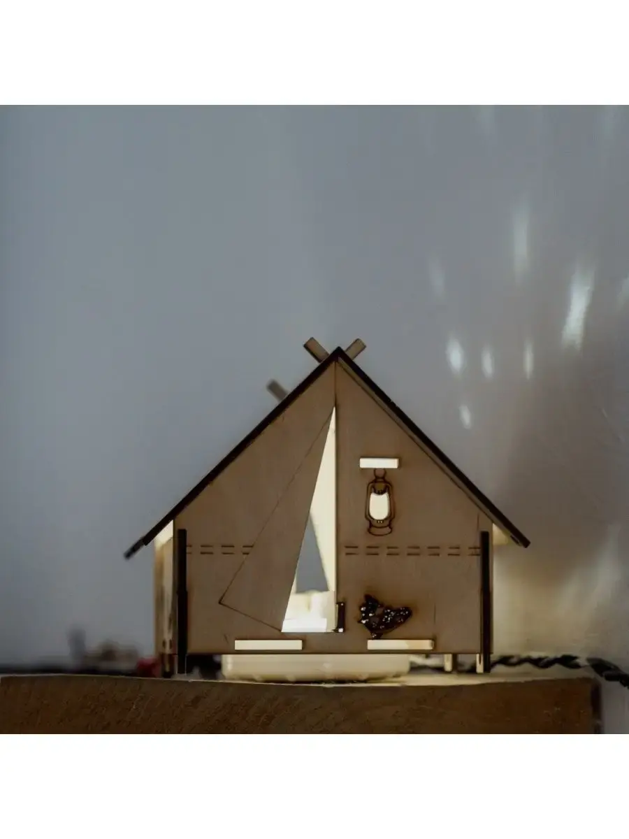 Ночник детский для дома "Палатка туриста" создаст уютную атмосферу в детской комнате. Теплый и мягкий свет безопасен для глаз ребенка. С ночником ребенок начинает быстрее засыпать. На крыше вырезаны звёзды и луна, через них свет отражается на потолке, по периметру расположено множество туристических атрибутов. Ночник работает от батареек, которые входят в комплект. Светильник выполнен из фанеры, которая имеет легкий древесный аромат. Можно установить на стол или прикроватную тумбу в детской комнате. Лампа настольная - хороший подарок для мальчика и девочки, которые хотят быть настоящими туристами.