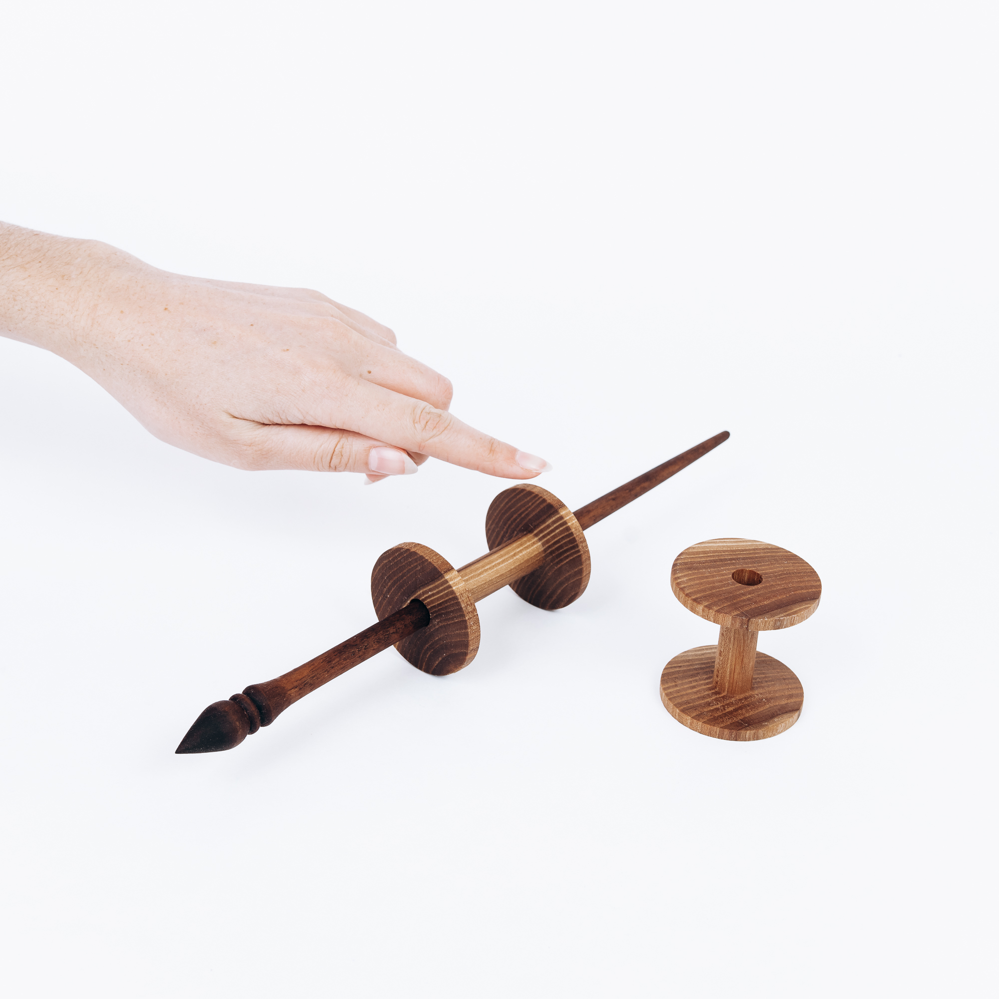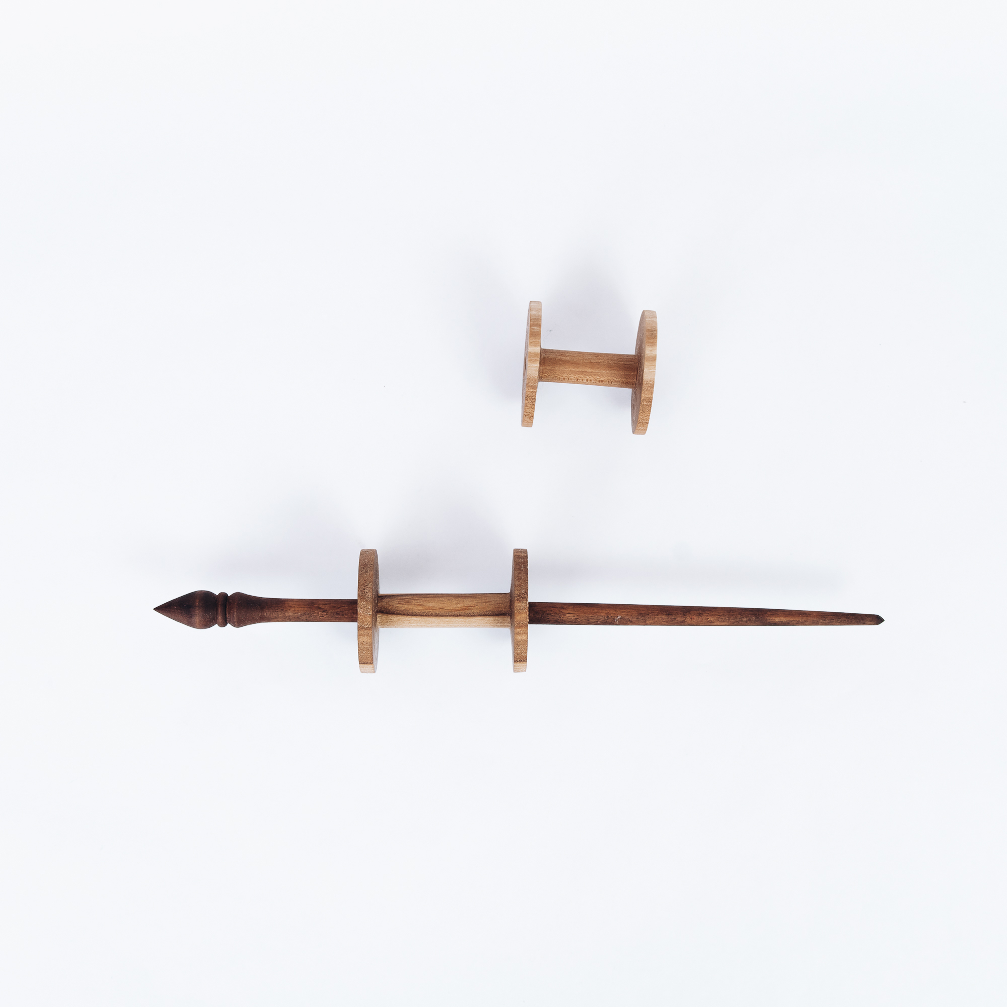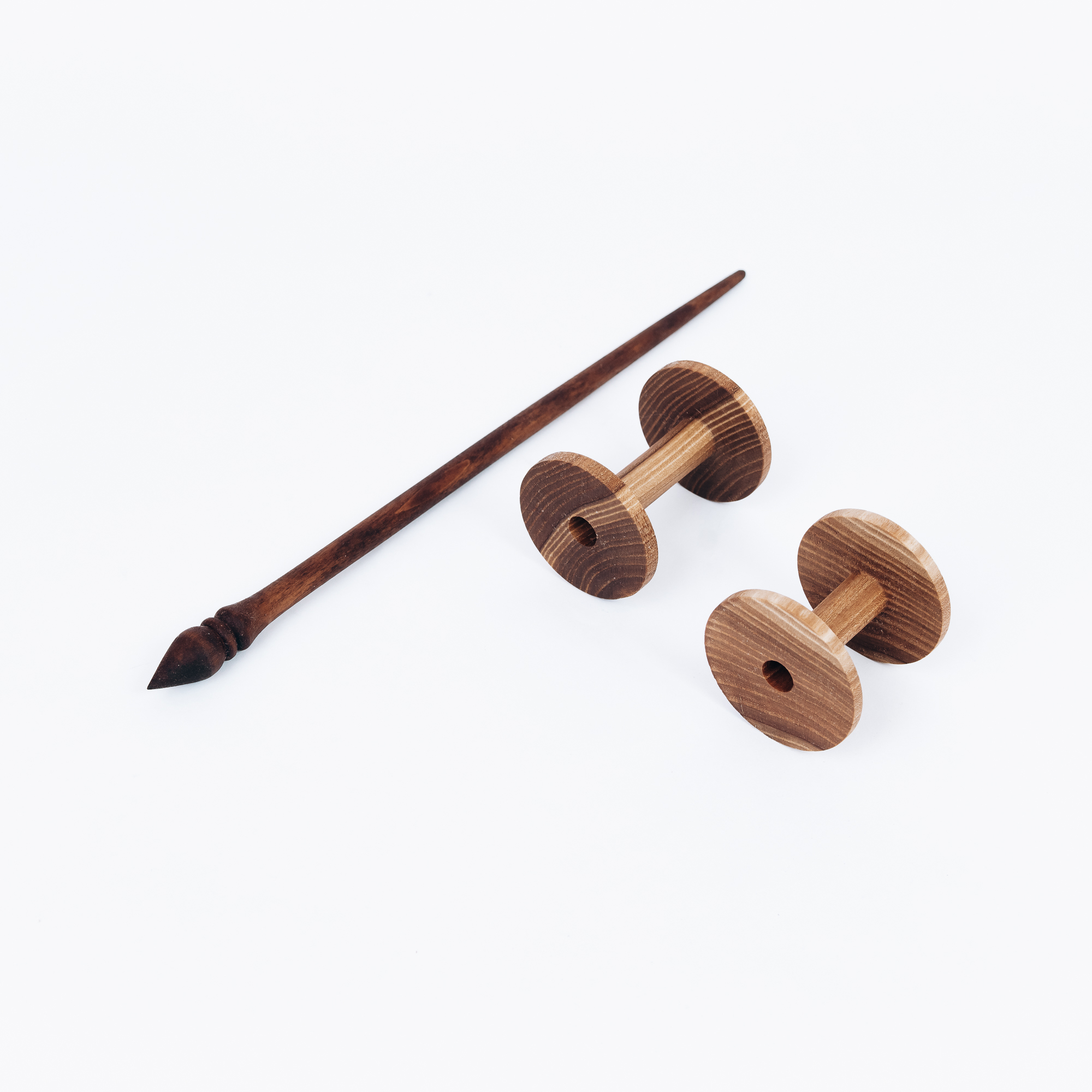 Опорное веретено с двумя катушками из натурального дерева.