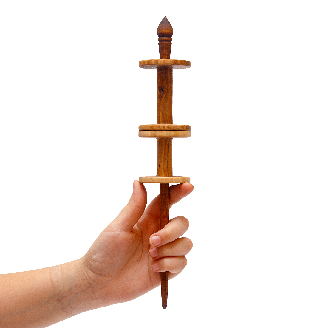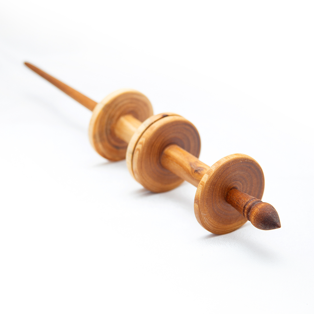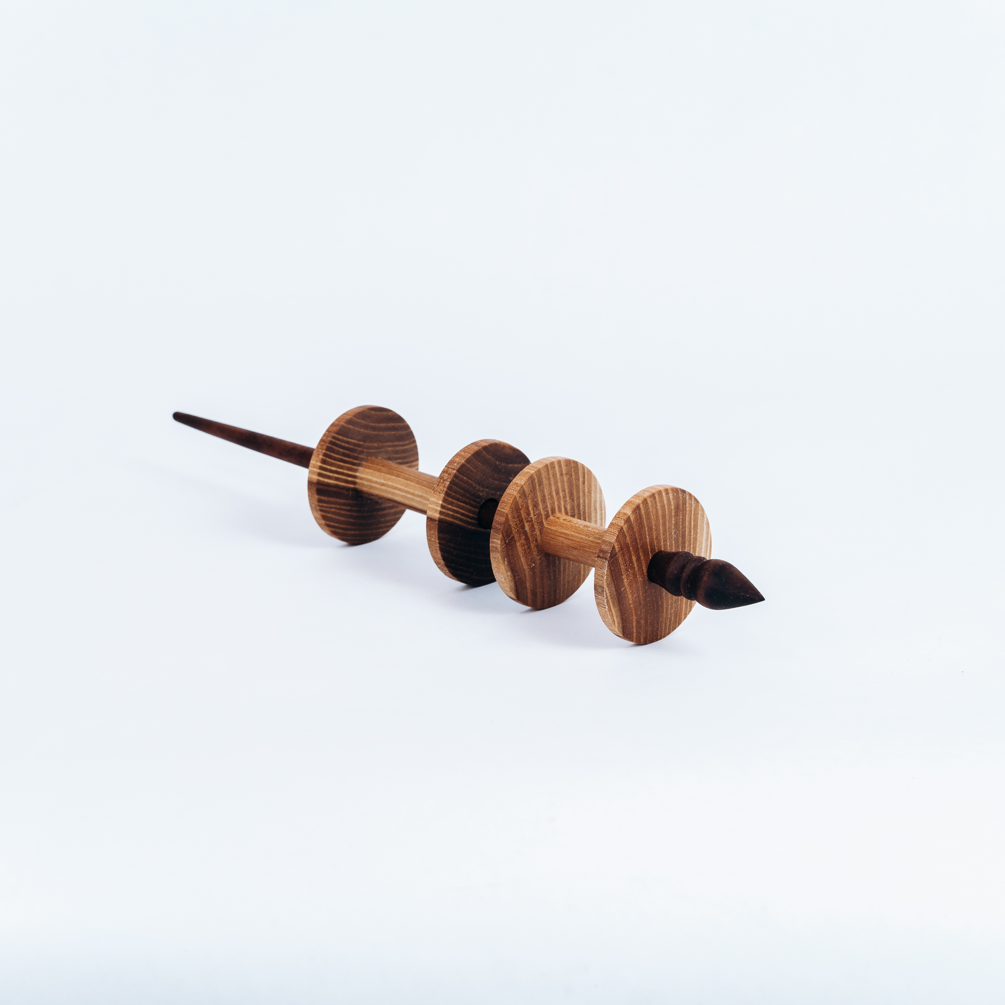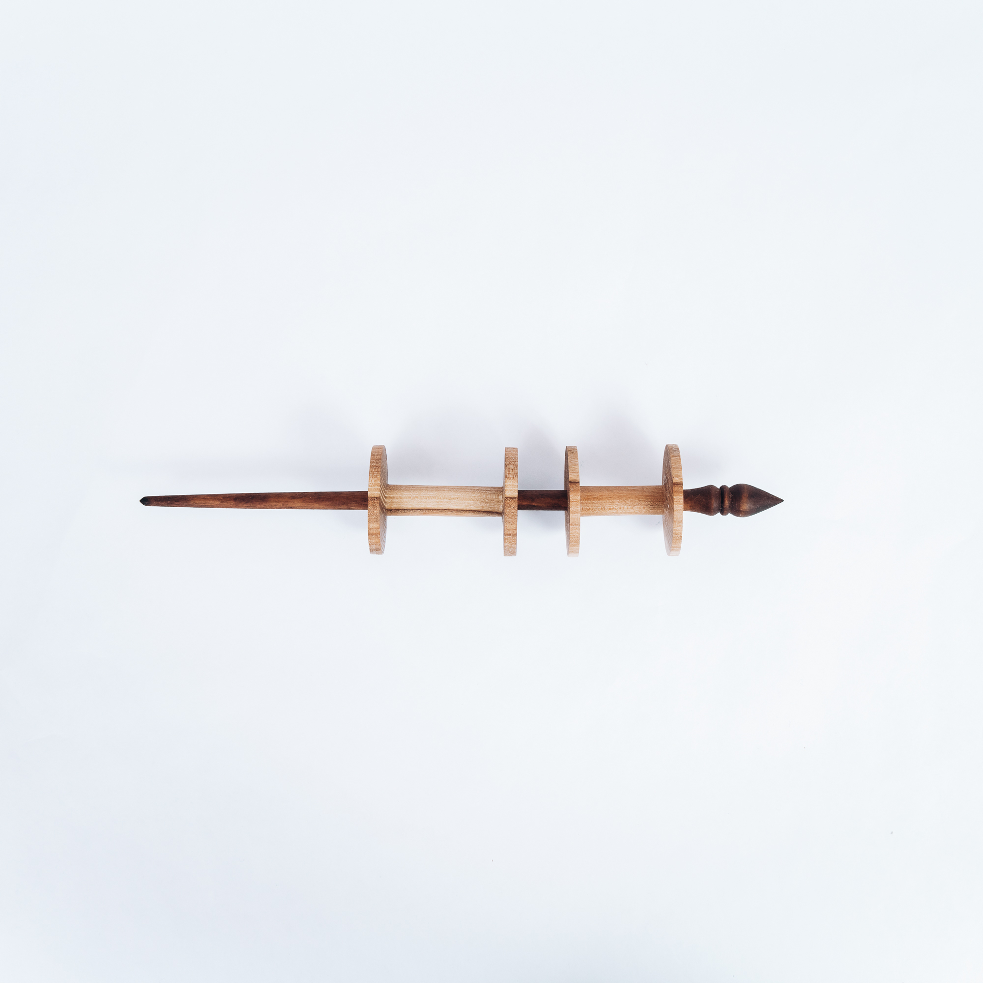 Опорное веретено с двумя катушками из натурального дерева.