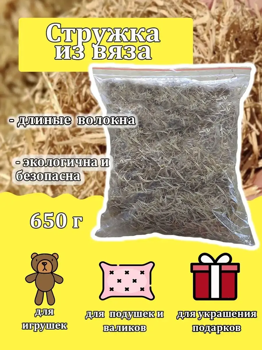 Отборная 100% стружка из вяза! Стружка прекрасно подойдут для наполнения текстильных изделий - мягких мишек, кукол и других игрушек, подушек, валиков и др. Создает отличный эффект терапевтического действия. Длинную стружку можно применять для украшения подарков. Упакована в большой зип пакет.