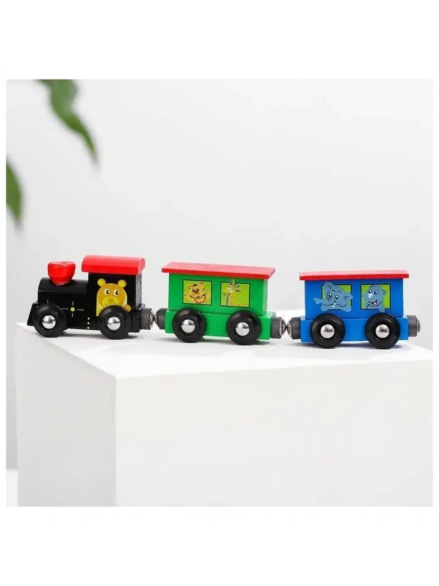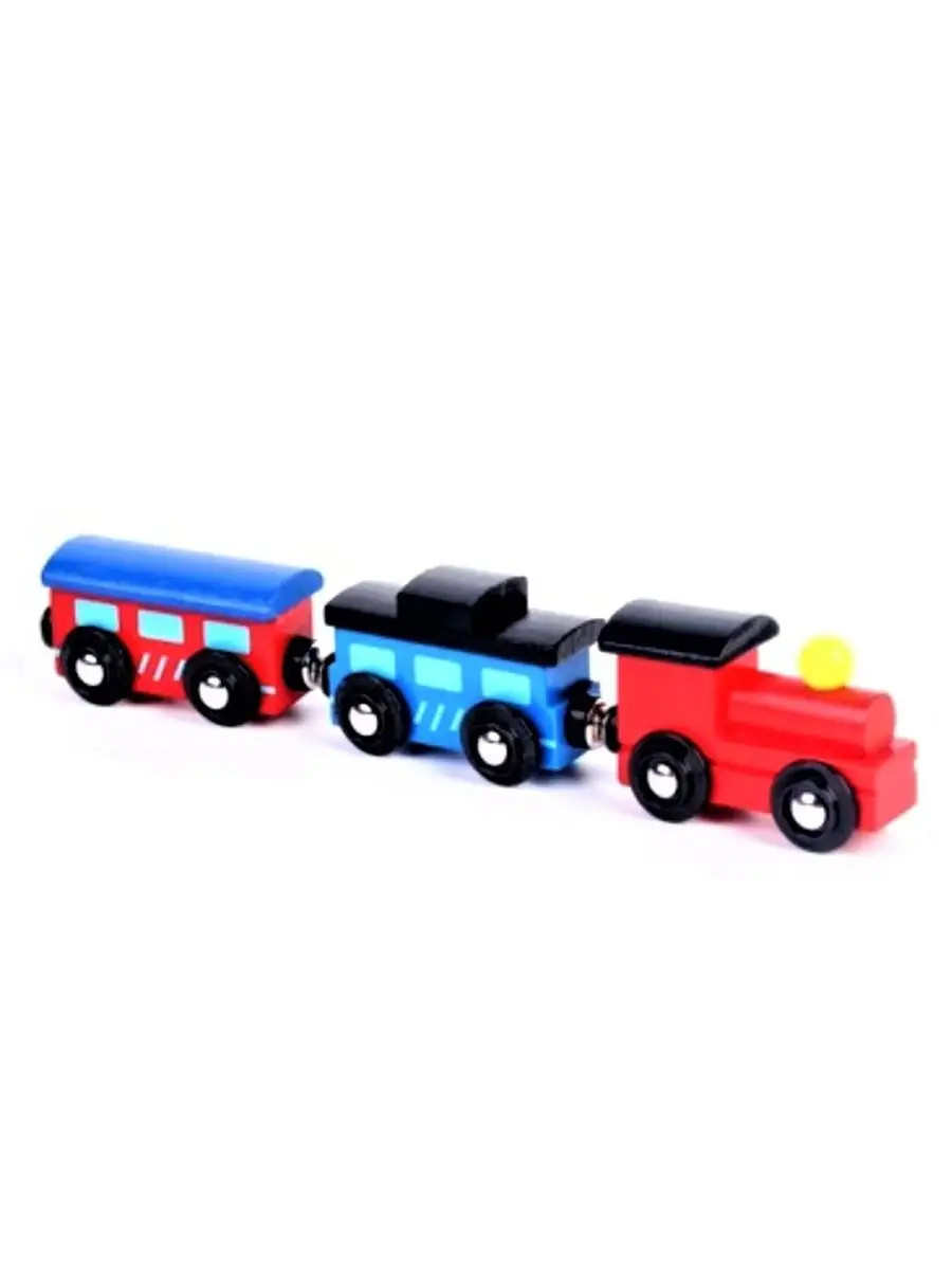 Вагон с магнитом легко состыковывается с дополнительными вагонами. Деревянные паровозики очень нравятся детям. Ребенок может катать паровоз по полу, или по рельсам деревянной железной дороги, если она у вас уже есть. В процессе игры малыш придумывает различные истории, которые с ними происходят. Занятия с деревянным поездом помогают ребенку освоить навык счета, изучить цвета, развить мелкую моторику рук, совершенствовать координацию движений, развить воображение и фантазию. Вагоны крепятся между собой при помощи крепких магнитов. Благодаря такому способу сцепления, ребенку будет легко самостоятельно присоединять их. Игрушечный паровозик окрашен качественными красками на водной основе, которые полностью безопасны для малыша. Длина всего поездного состава около 30 см, зависит от паровоза. Можно соединить между собой вагончики от разных паровозиков.