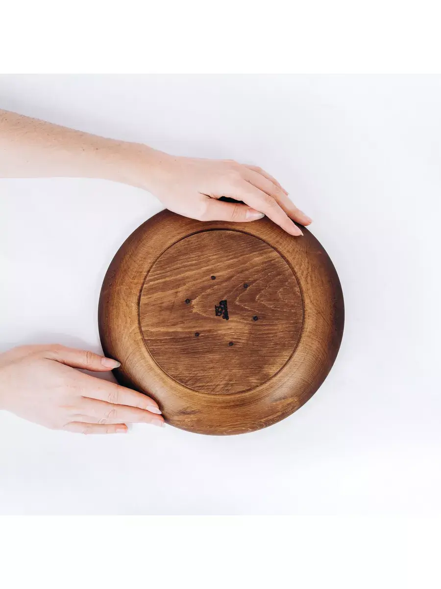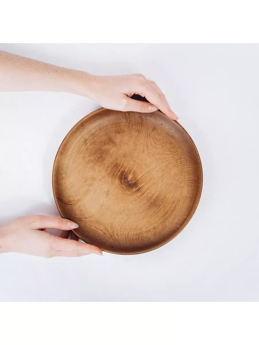 Деревянная плоская тарелка из дерева сибирский кедр! Прекрасный вариант для сервировки праздничного стола! Покрыта составом из растительного масла, кедровой смолы и пчелиного воска.