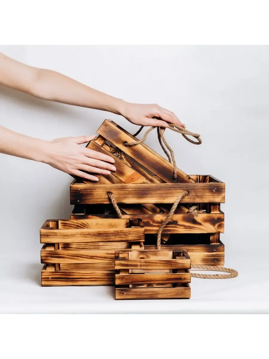 Набор деревянных подарочных декоративных коробок, ящиков для хранения из древесины кедра 4 штуки. Если Вы ищите оригинальную упаковку для подарка, или просто интересный и функциональный предмет интерьера, то подарочный декоративный короб(ящик) из древесины Сибирского Кедра создан мастерами из Сибири именно для Вас. Аутентичный дизайн короба создает уютную атмосферу, а древесина Кедра, из которого изготовлен короб, имеет приятный хвойный аромат, который благотворно воздействует на здоровье человека, так как является природный антисептиком. Короб обработан нашим составом из масла и пчелиного воска. **Размер:** 53х100х83мм., 225х150х125мм., 297х200х162мм., 372х250х205мм. Общий вес 2,675кг.