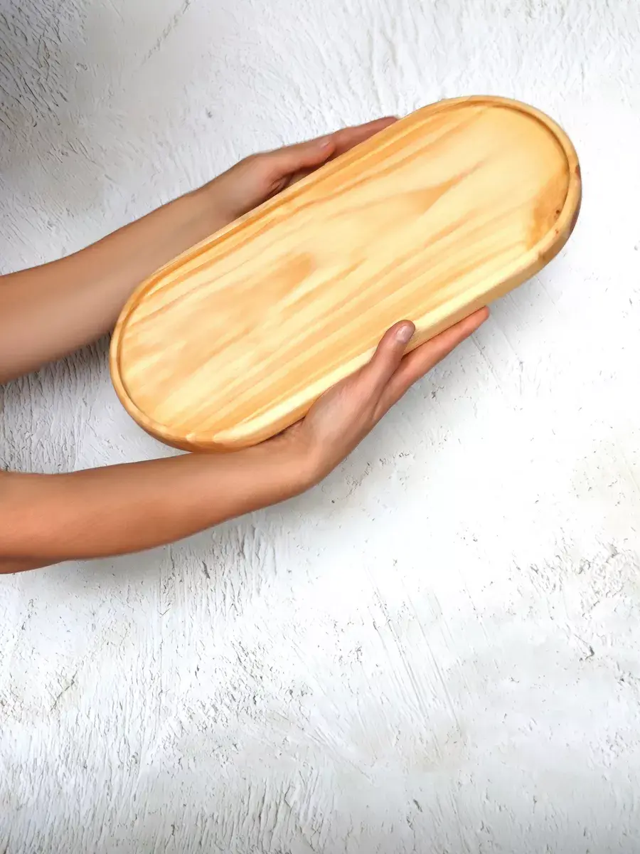 Красивый и прочный деревянный поднос для завтрака из натурального цельного массива Сибирского кедра украсит любую кухню, станет незаменимым атрибутом для завтраков в постель, для семейного чаепития, для праздника в шумной компании. Натуральная деревянная посуда может быть применена как подставка для посуды и столовых приборов, для пива и закусок, для сыра и нарезки, для фруктов, орешков и сухофруктов. Тарелка из Сибирского кедра понравится каждому, кто заботится о своём здоровье, правильном питании и современном оформлении интерьера. Подарите любимой на 8 марта! Декоративная менажница отлично подойдет для подачи сладостей и сервировки легких блюд. Деревянная тарелка изготовлена из экологического сырья и полностью безопасна для продуктов питания. Легкий и практичный поднос в дом, прекрасный подарок взрослым и детям, так как мы предъявляем высокие требования к их обработке, на первое место, наравне с красотой, выходит вопрос надежности и безопасности покрытия. Внимание! Поднос имеет погрешность измерения +- 0,5 см, просим учитывать при заказе товара.Подарите маме, бабушке, жене, любимой на 8 марта и они будут в восторге! Размеры подноса: длина 400 мм, ширина 180 мм, высота 28 мм, глубина 10 мм.. Цвет натуральный. Покрыт маслом-воском. Вес 0,435 г.