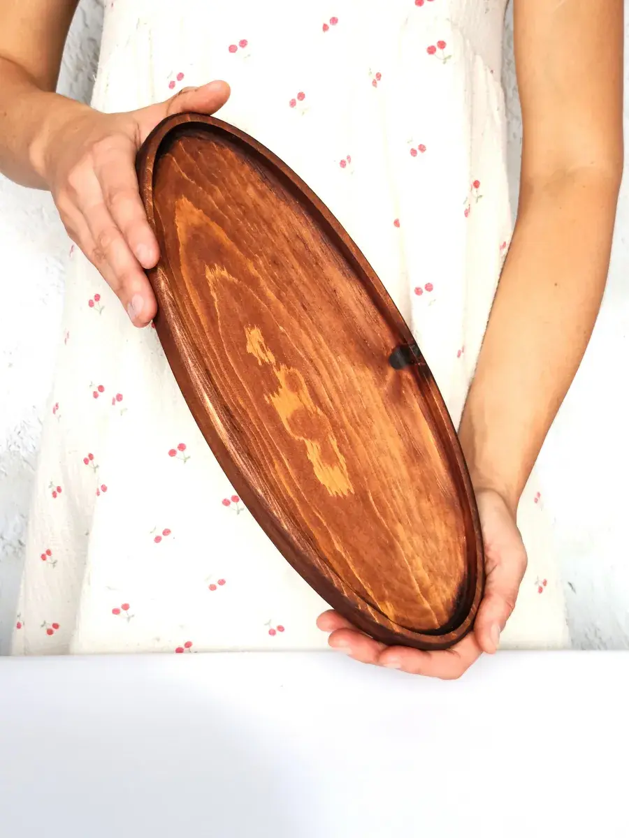 Красивый и прочный деревянный поднос для завтрака из натурального цельного массива Сибирского кедра украсит любую кухню, станет незаменимым атрибутом для завтраков в постель, для семейного чаепития, для праздника в шумной компании. Натуральная деревянная посуда может быть применена как подставка для посуды и столовых приборов, для пива и закусок, для сыра и нарезки, для фруктов, орешков и сухофруктов. Тарелка из Сибирского кедра понравится каждому, кто заботится о своём здоровье, правильном питании и современном оформлении интерьера. Подарите любимой на 8 марта! Декоративная менажница отлично подойдет для подачи сладостей и сервировки легких блюд. Деревянная тарелка изготовлена из экологического сырья и полностью безопасна для продуктов питания. Легкий и практичный поднос в дом, прекрасный подарок взрослым и детям, так как мы предъявляем высокие требования к их обработке, на первое место, наравне с красотой, выходит вопрос надежности и безопасности покрытия. Внимание! Поднос имеет погрешность измерения +- 0,5 см, просим учитывать при заказе товара.Подарите маме, бабушке, жене, любимой на 8 марта и они будут в восторге! Размеры подноса: длина 350 мм, ширина 140 мм, высота 28 мм, глубина 10 мм.. Цвет "орех". Покрыт маслом-воском. Вес 0,295 г.