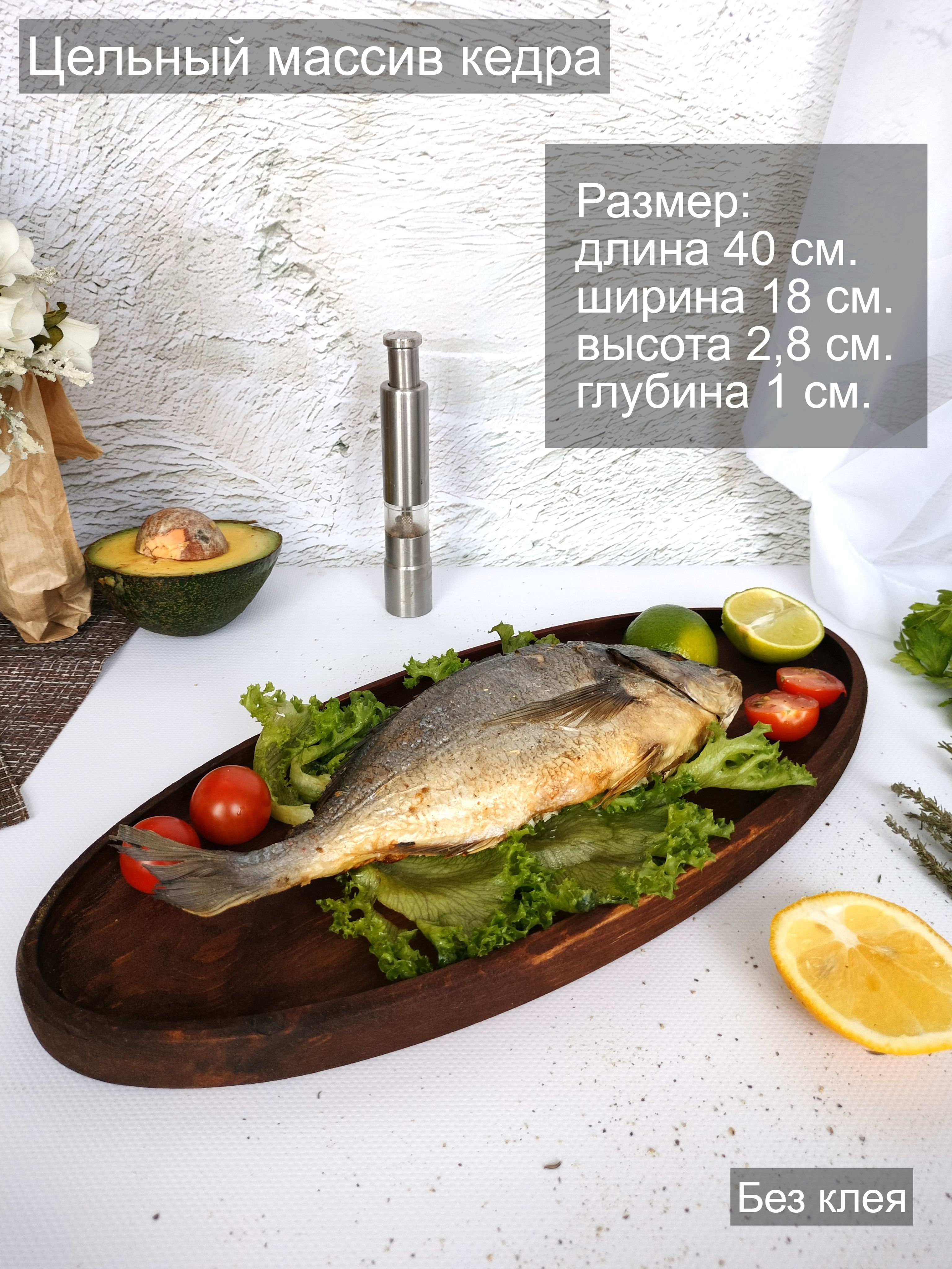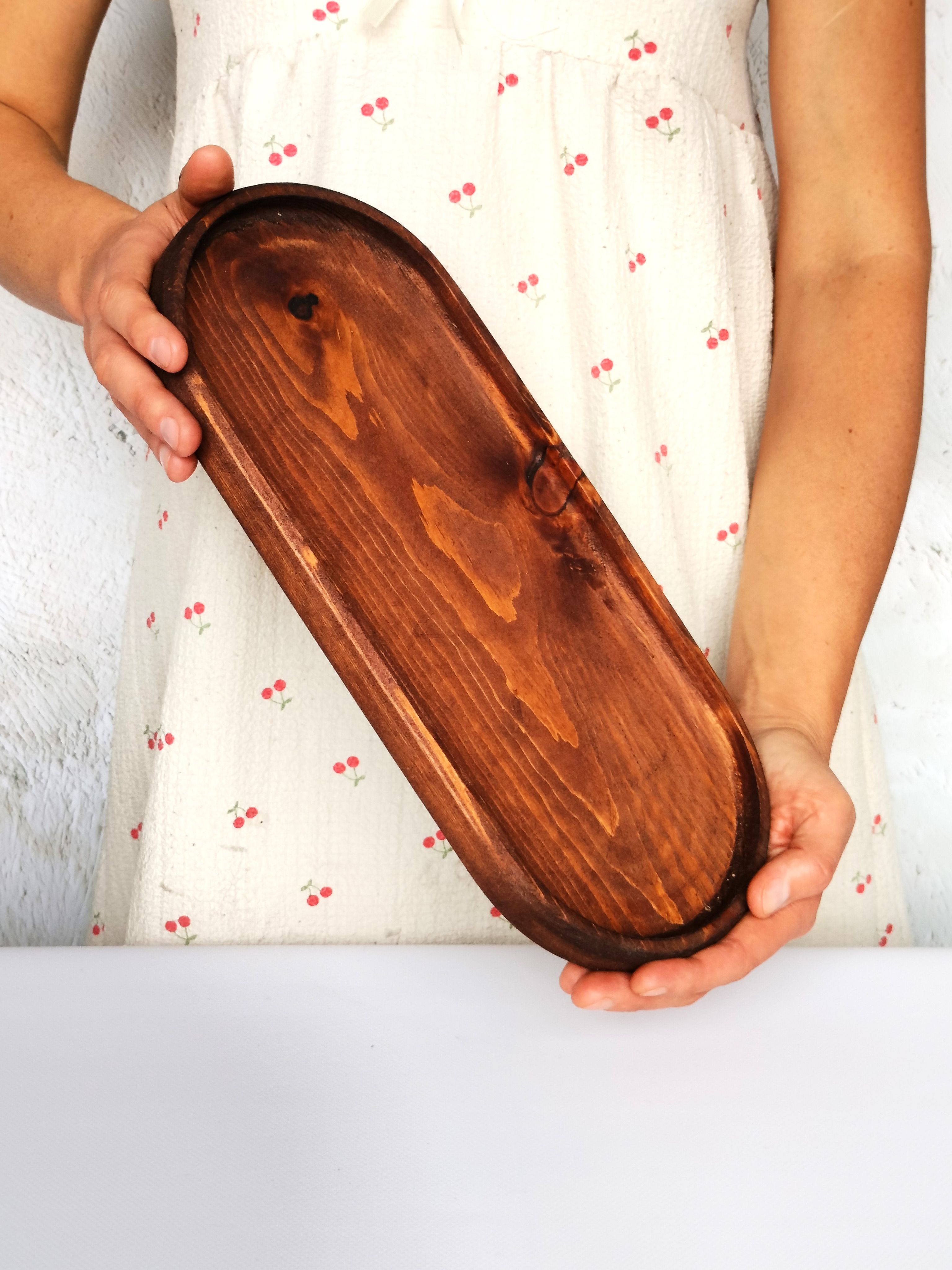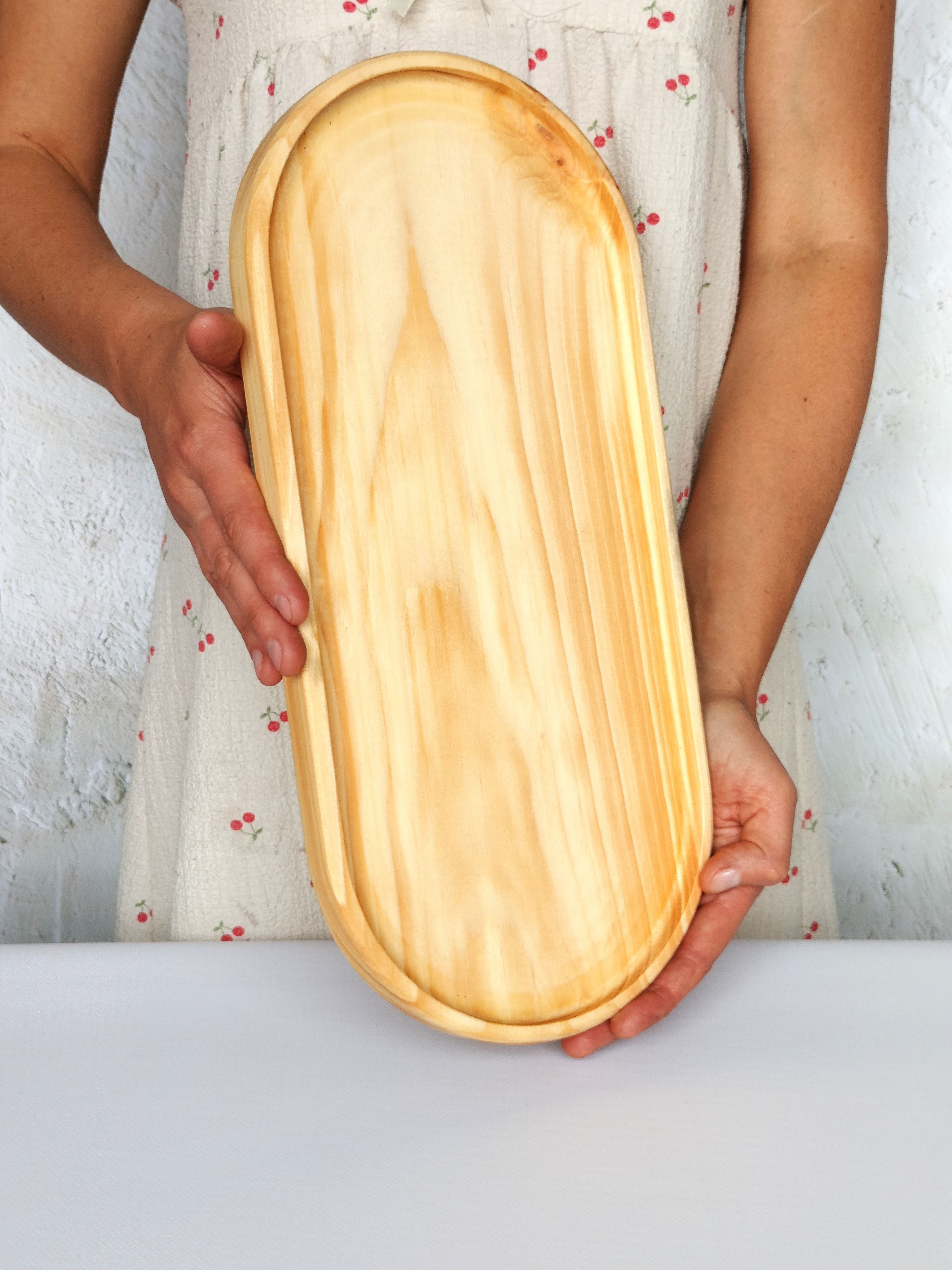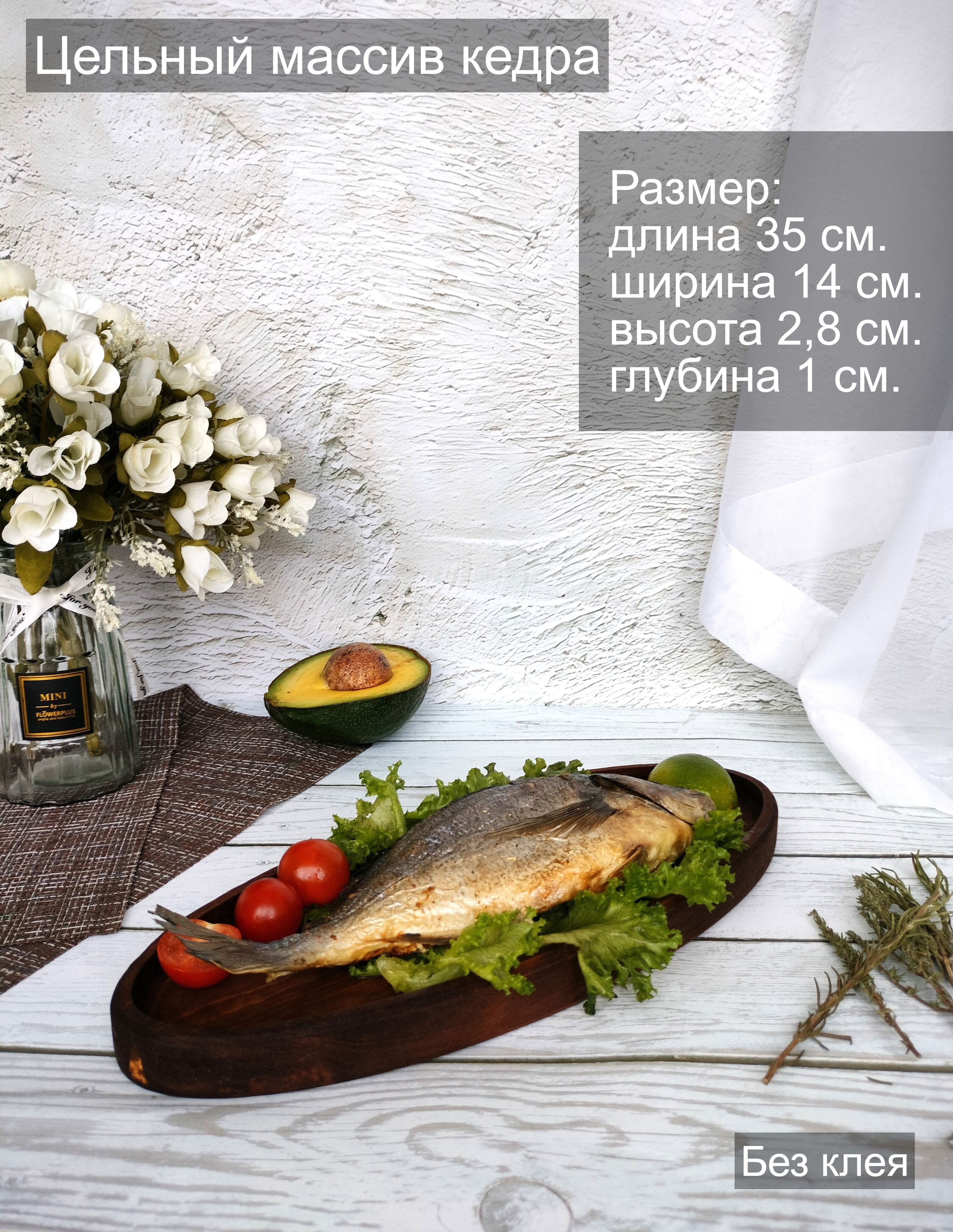 Красивый и прочный деревянный поднос для завтрака из натурального цельного массива Сибирского кедра украсит любую кухню, станет незаменимым атрибутом для завтраков в постель, для семейного чаепития, для праздника в шумной компании. Натуральная деревянная посуда может быть применена как подставка для посуды и столовых приборов, для пива и закусок, для сыра и нарезки, для фруктов, орешков и сухофруктов. Тарелка из Сибирского кедра понравится каждому, кто заботится о своём здоровье, правильном питании и современном оформлении интерьера. Подарите любимой на 8 марта! Декоративная менажница отлично подойдет для подачи сладостей и сервировки легких блюд. Деревянная тарелка изготовлена из экологического сырья и полностью безопасна для продуктов питания. Легкий и практичный поднос в дом, прекрасный подарок взрослым и детям, так как мы предъявляем высокие требования к их обработке, на первое место, наравне с красотой, выходит вопрос надежности и безопасности покрытия. Внимание! Поднос имеет погрешность измерения +- 0,5 см, просим учитывать при заказе товара. Подарите маме, бабушке, жене, любимой на 8 марта и они будут в восторге! Размеры подноса: длина 400 мм, ширина 180 мм, высота 28 мм, глубина 10 мм.. Цвет натуральный. Покрыт маслом-воском. Вес 0,435 г.
