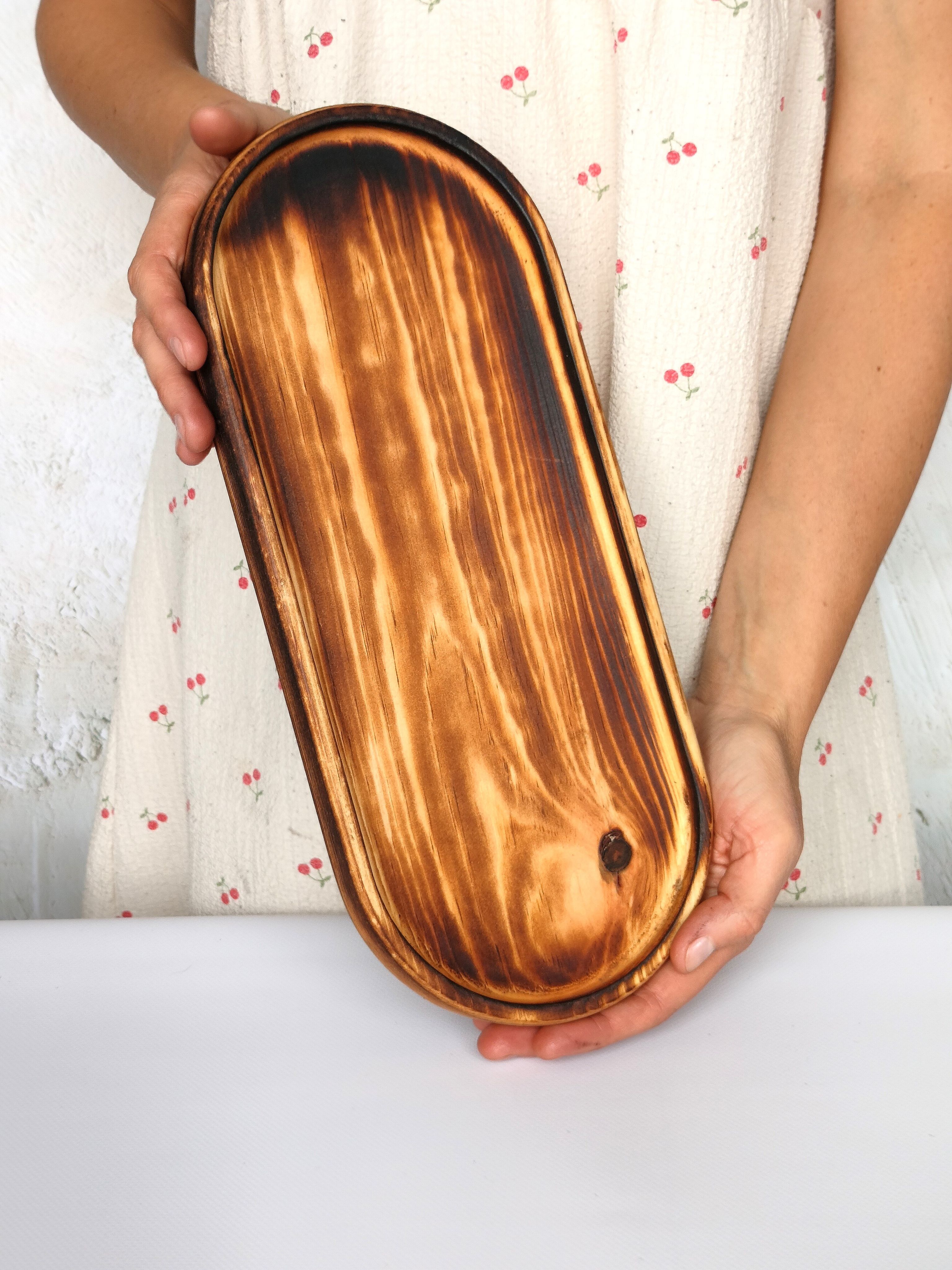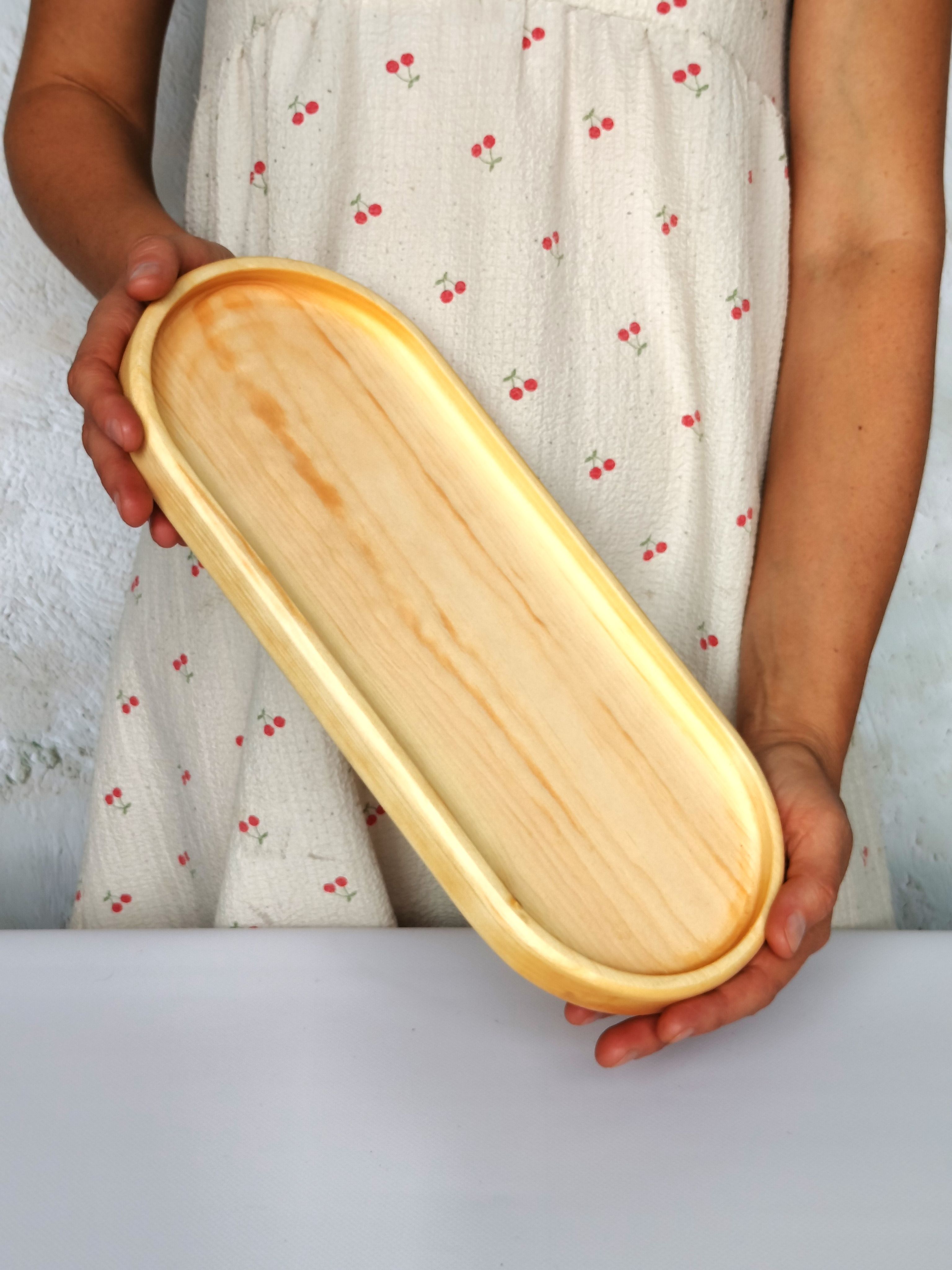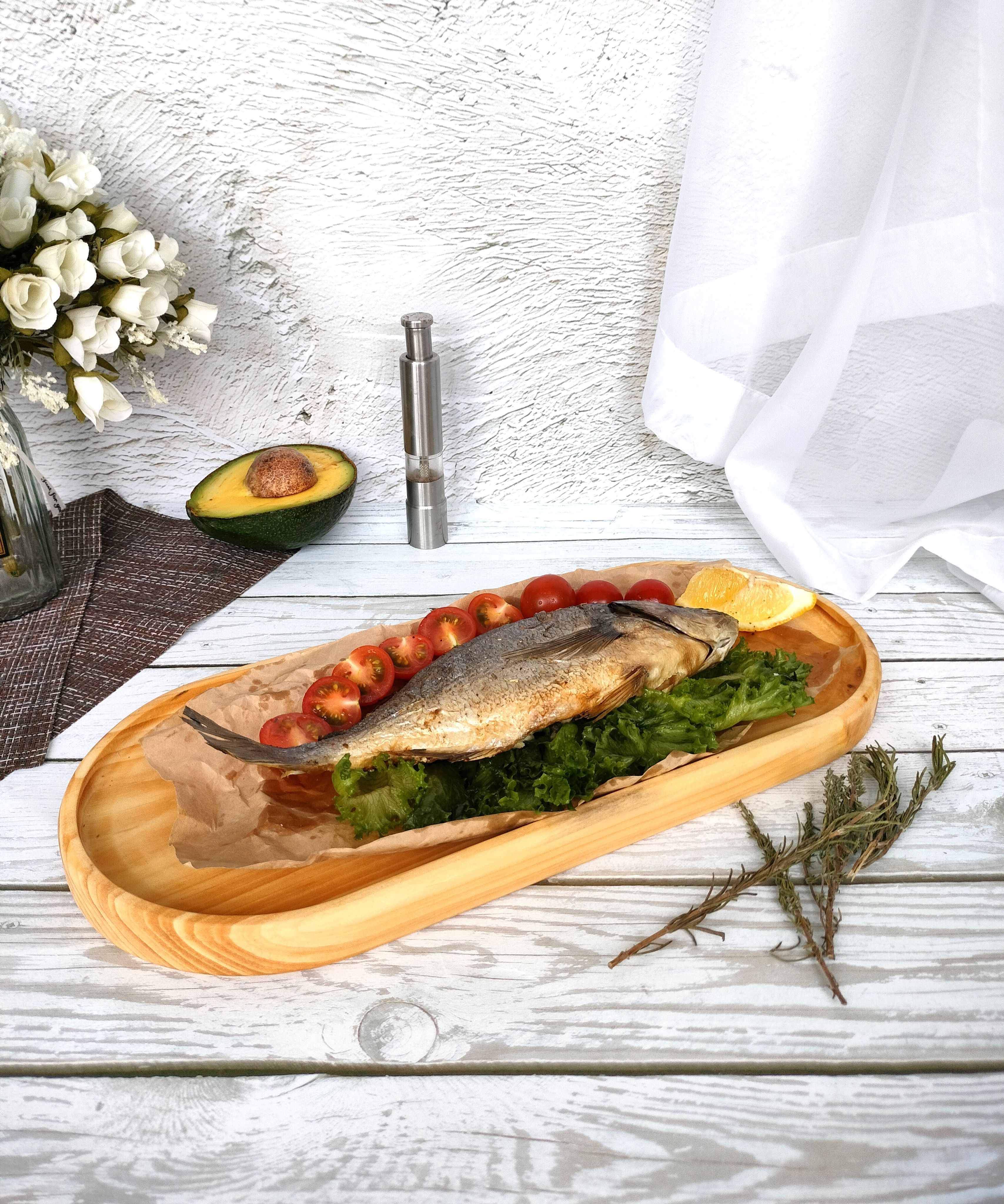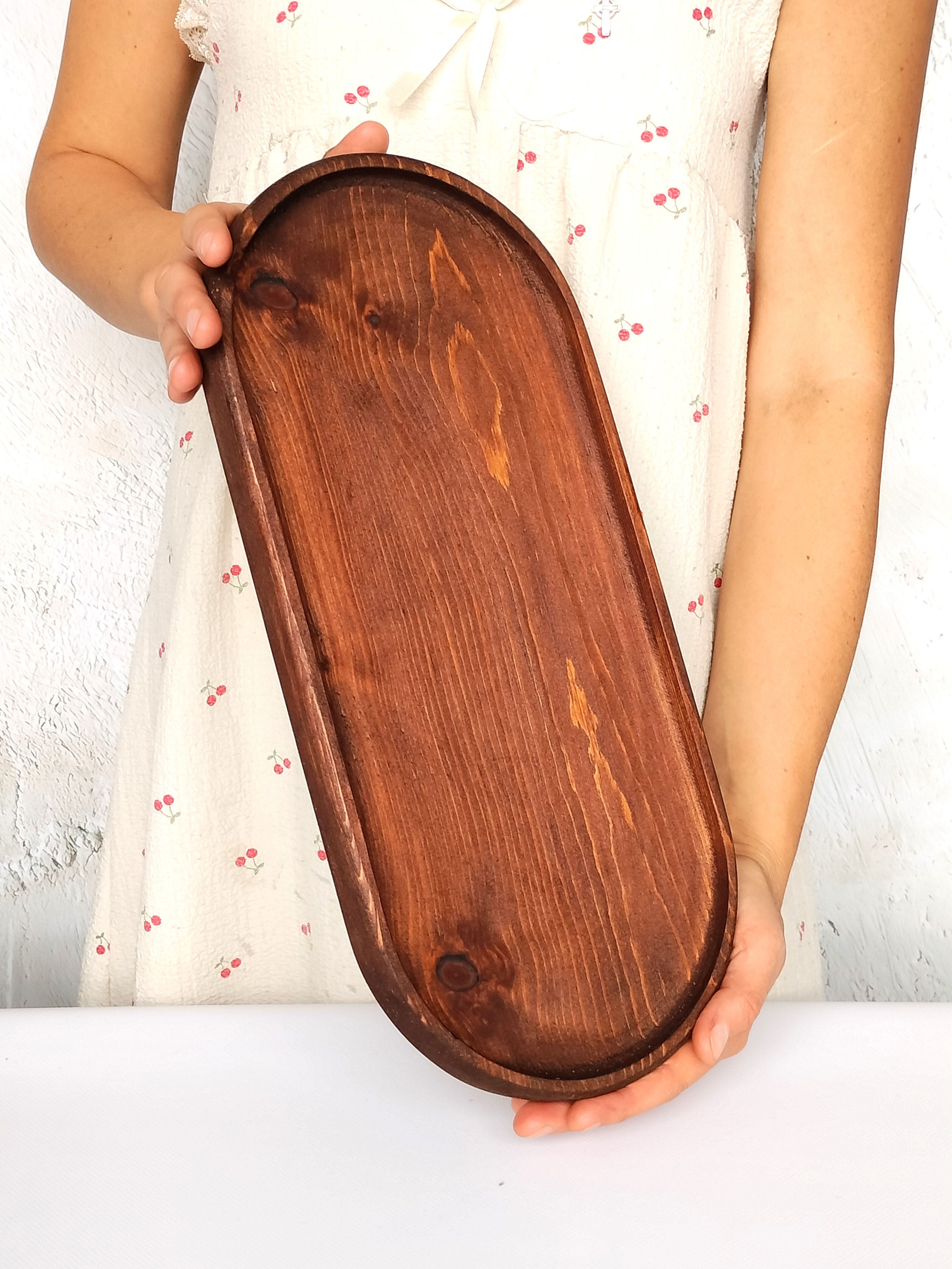 Красивый и прочный деревянный поднос для завтрака из натурального цельного массива Сибирского кедра украсит любую кухню, станет незаменимым атрибутом для завтраков в постель, для семейного чаепития, для праздника в шумной компании. Натуральная деревянная посуда может быть применена как подставка для посуды и столовых приборов, для пива и закусок, для сыра и нарезки, для фруктов, орешков и сухофруктов. Тарелка из Сибирского кедра понравится каждому, кто заботится о своём здоровье, правильном питании и современном оформлении интерьера. Подарите любимой на 8 марта! Декоративная менажница отлично подойдет для подачи сладостей и сервировки легких блюд. Деревянная тарелка изготовлена из экологического сырья и полностью безопасна для продуктов питания. Легкий и практичный поднос в дом, прекрасный подарок взрослым и детям, так как мы предъявляем высокие требования к их обработке, на первое место, наравне с красотой, выходит вопрос надежности и безопасности покрытия. Внимание! Поднос имеет погрешность измерения +- 0,5 см, просим учитывать при заказе товара. Подарите маме, бабушке, жене, любимой на 8 марта и они будут в восторге! Размеры подноса: длина 400 мм, ширина 180 мм, высота 28 мм, глубина 10 мм.. Цвет натуральный. Покрыт маслом-воском. Вес 0,435 г.
