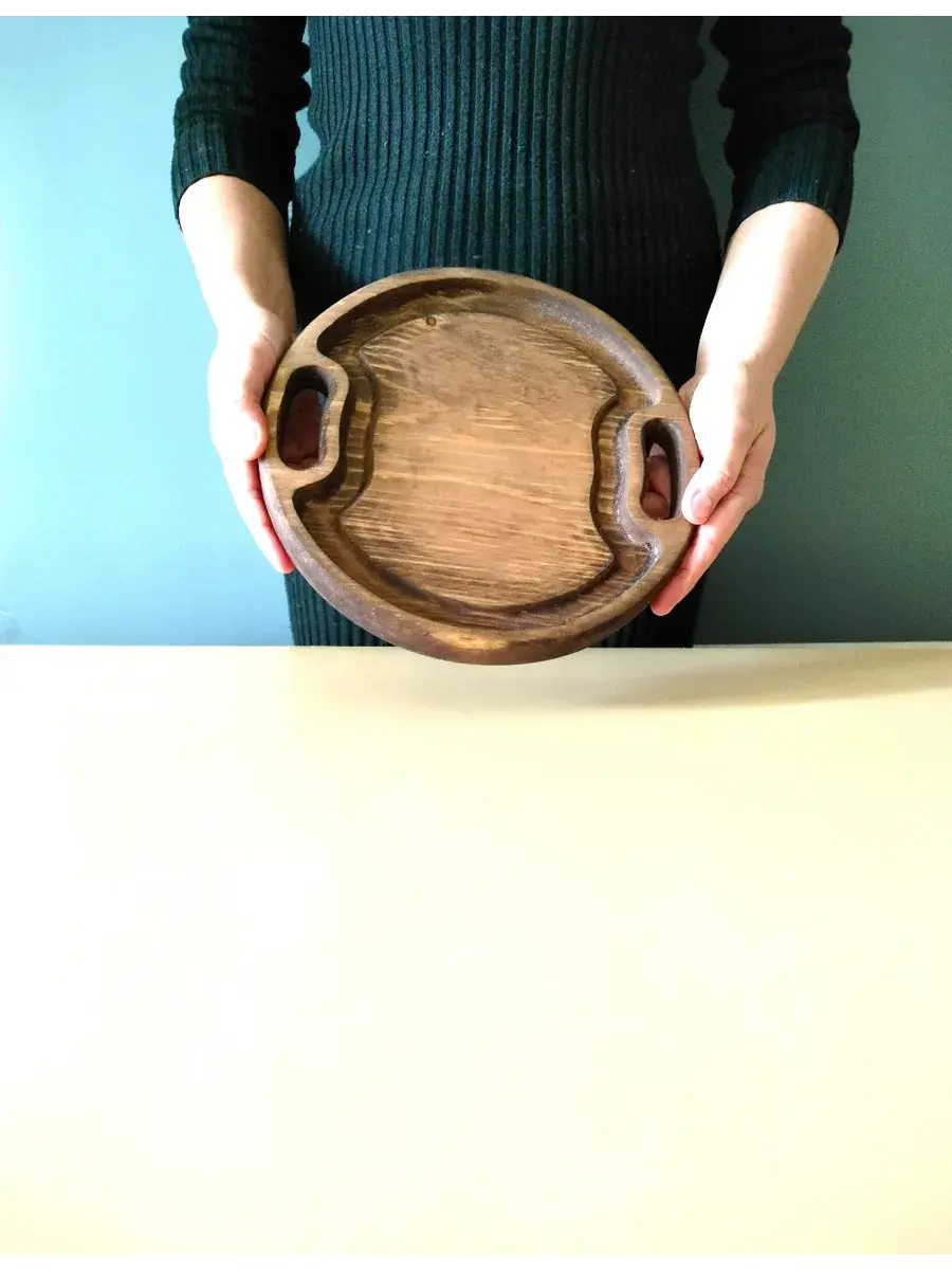 Поднос деревянный сервировочный из Сибирского кедра ручной работы для кухни. Выполнена из 100% массива, полностью цельная. Многие хозяйки мечтают, чтобы ее семейный обед или праздничный ужин был таким, как в престижном дорогом ресторане, поэтому озадачиваются сервировкой и красивой подачей блюд. В этом случае можно воспользоваться нашей новинкой - менажница для подачи блюд! Слово французского происхождения, от melanger – «смешивать», то есть в буквальном смысле менажница – это тарелка, на которой смешаны разные блюда. Наша экологичная посуда из дерева придется по душе каждому, кто любит вкусно поесть и получить удовольствие от еды. Деревянная менажница для сервировки обладает следующими преимуществами: красивая текстура древесины, очень прочная, натуральная и долговечная. Фитонциды, входящие в состав кедровой древесины, имеют антибактериальные свойства. Они способны обеззараживать воздух, убивать простейшие микроорганизмы и вирусы. Поднос из дерева станет отличным подарком на Новый год, день рождения и новоселье. Менажница подходит для горячих и холодных блюд, для сыра, для закусок и фруктов. Возможно наличие сучков. Идеальная шлифовка позволяет изделию быть очень гладким. Менажница пропитана натуральным маслом, которое, необходимо смыть в теплой проточной воде перед использованием. Не замачивать! Не использовать в посудомоечной машине! Только деликатная мойка. После использования насухо вытереть.