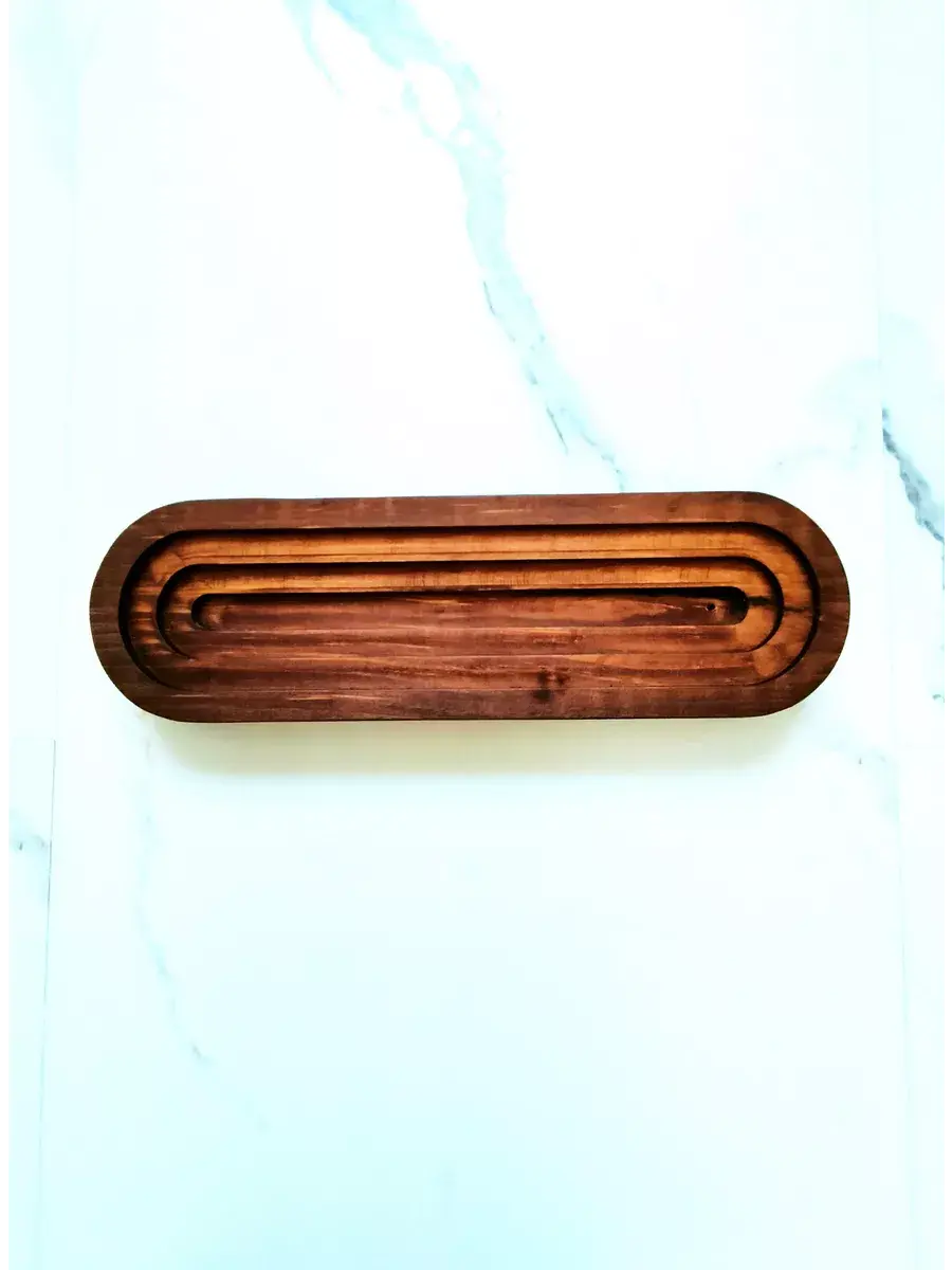 Размер 24,5 * 7,5*2,5 см. Подставка (держатель, курильница) для благовоний из цельного Кедра с гравировкой горы в цвете "орех" . Предназначена под стандартные бамбуковые палочки (с бамбуковой основой). Подставка под благовония может украсить собой Вашу уютную спальню, гостиную или дамскую комнату, защитит от пепла поверхность, на которой она располагается, и отлично впишется в интерьер. Изделие ручной работы- прекрасный подарок девушке, маме, подруге, сестре, коллеге и всем родным и близким. Подставку можно применять дома перед сном для расслабления, так же ее удобно брать с собой на природу для йоги, набор для медитации и чтения индийских мантр.