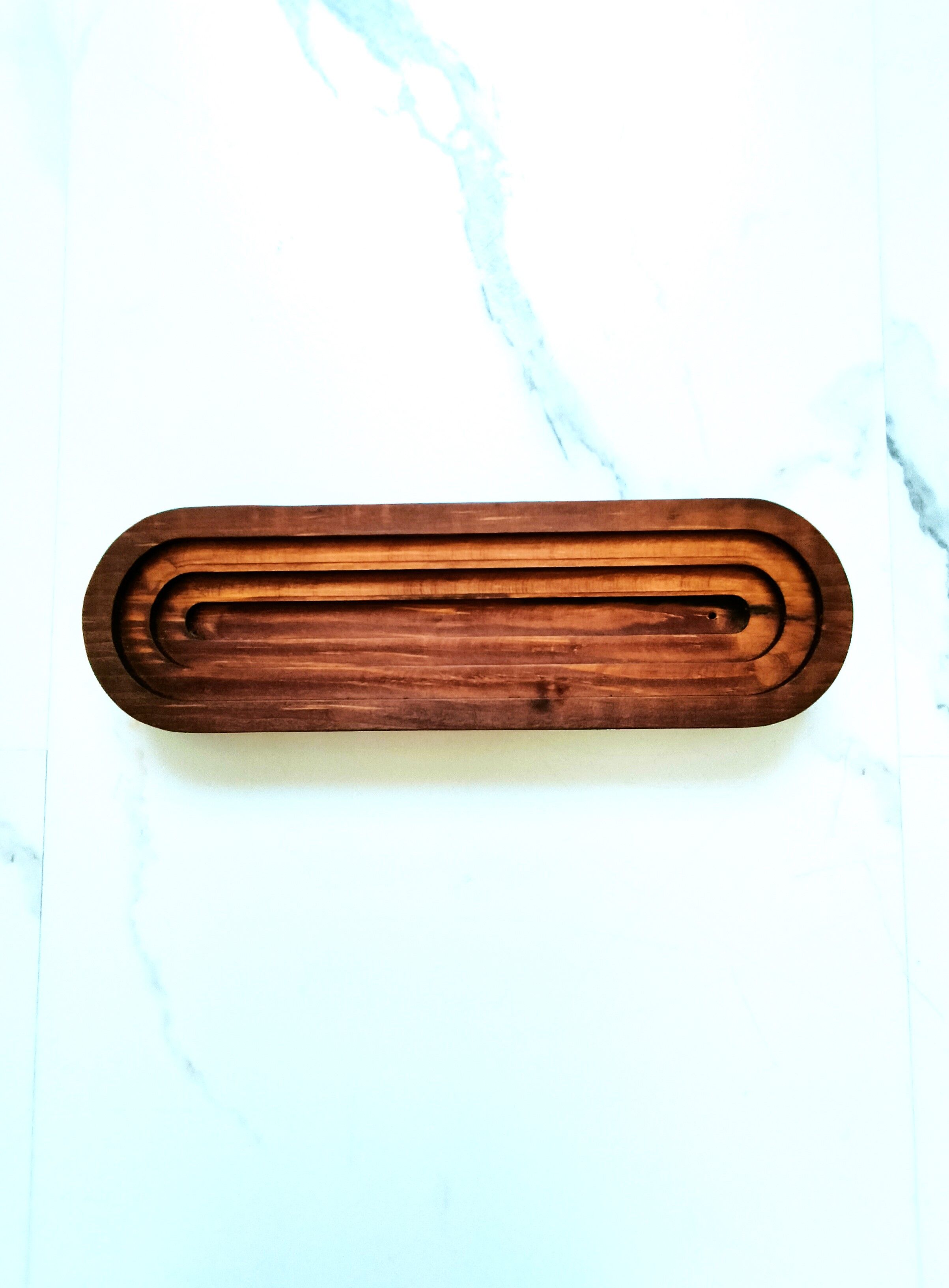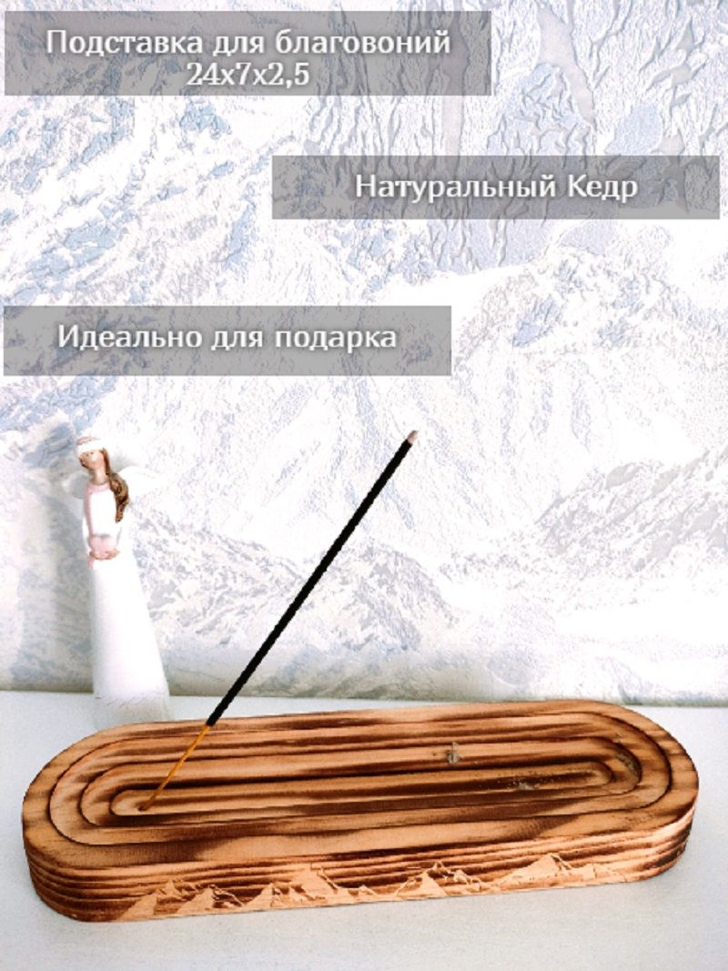 Размер 24,5 * 7,5*2,5 см. Подставка (держатель, курильница) для благовоний из цельного Кедра с гравировкой в натуральном цвете . Предназначена под стандартные бамбуковые палочки (с бамбуковой основой). Подставка под благовония может украсить собой Вашу уютную спальню, гостиную или дамскую комнату, защитит от пепла поверхность, на которой она располагается, и отлично впишется в интерьер. Изделие ручной работы- прекрасный подарок девушке, маме, подруге, сестре, коллеге и всем родным и близким. Подставку можно применять дома перед сном для расслабления, так же ее удобно брать с собой на природу для йоги, набор для медитации и чтения индийских мантр.