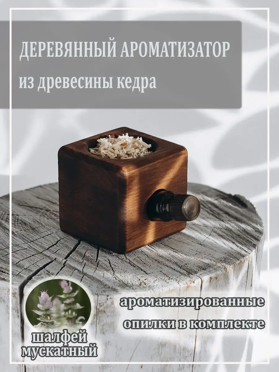Ароматизатор для дома из дерева сибирского кедра ручной работы представляет собой емкость с наполнителем в виде опилок! Парфюм для дома можно заполнить любым ароматическим веществом, оно пропитывает опилки и постепенно испаряется, распространяя аромат в помещении в течение длительного времени - месяца и более. После полного испарения аромата, можно заполнить емкость заново и сменить опилки. Диффузор, кроме распространения аромата в помещении, может принести пользу для здоровья, если использовать в качестве наполнения натуральные эфирные масла. Ведь эфирные масла укрепляют иммунитет, обладают бактерицидными и противовирусными свойствами. Кроме того, наш ароматизатор может стать эстетически приятным и стильным дополнением интерьера, а так же это отличный подарок для девушки. В наличии имеются наборы с различными ароматическими опилками. Размер: высота 7,5 см., диаметр 7,5 см.