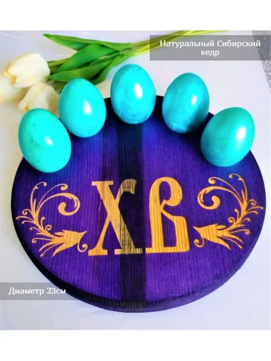 Подставка для 5 яиц послужит украшением для праздничного стола. При производстве используются только экологически чистые материалы. Подставка сделана из натурального Сибирского кедра и покрыта натуральным маслом на основе пчелиного воска, что делает подставку для яйца очень надежным и качественным блюдом для сервировки и подачи. Пасхальная тарелка также может быть использована как подсвечник для чайных свечей диаметром до 3,8 мм., что делает декоративную подставку под яйца универсальным подарком на праздник пасха, юбилей, день рождение, новоселье и другие. Подставка под яйца пасхальная служит также как разделочная деревянная доска, если ее перевернуть на другую сторону. Оборотная сторона подставки для яиц деревянной может также быть деревянной доской для сыра или доской для подачи закусок. Подставка для пасхальных яиц имеет размер 23 см * 23 см и толщину 2 см. Пасхальные товары сейчас представлены в большом многообразии, но из года в год самыми экологичными и стильными являются именно деревянная пасхальные предметы декора и посуда. Пасхальные украшения создадут уютную праздничную обстановку на праздник Пасхи, но и после праздника пасхальные товары будут радовать вас своей универсальностью. Антибактериальные свойства кедра привлекают ценителей чистоты.