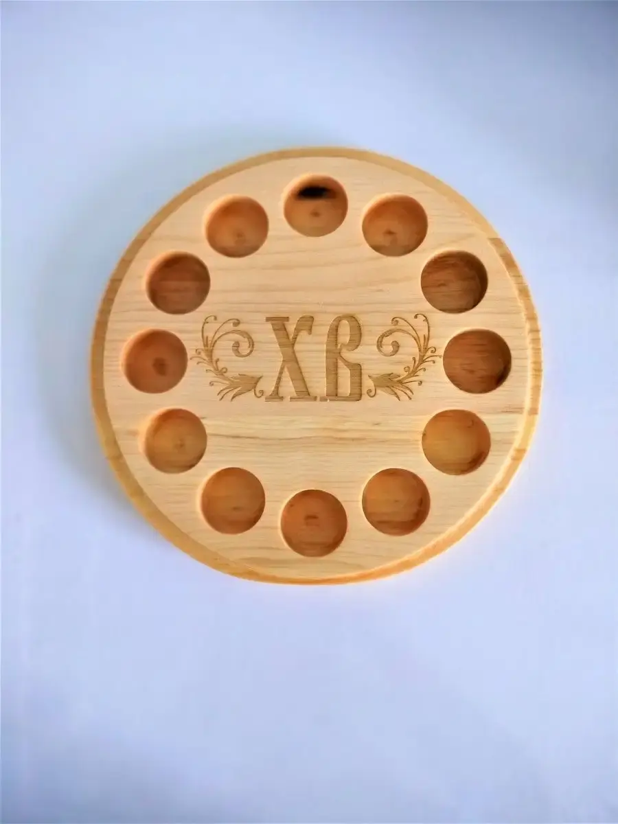 Подставка для 12 яиц послужит украшением для праздничного стола. При производстве используются только экологически чистые материалы. Подставка сделана из натурального Сибирского кедра и покрыта натуральным маслом на основе пчелиного воска, что делает подставку для яйца очень надежным и качественным блюдом для сервировки и подачи. Пасхальная тарелка также может быть использована как подсвечник для чайных свечей диаметром до 3,8 мм., что делает декоративную подставку под яйца универсальным подарком на праздник пасха, юбилей, день рождение, новоселье и другие. Подставка под яйца пасхальная служит также как разделочная деревянная доска, если ее перевернуть на другую сторону. Оборотная сторона подставки для яиц деревянной может также быть деревянной доской для сыра или доской для подачи закусок. Подставка для пасхальных яиц имеет размер 25 см * 25 см и толщину 2,5 см. Пасхальные товары сейчас представлены в большом многообразии, но из года в год самыми экологичными и стильными являются именно деревянная пасхальные предметы декора и посуда. Пасхальные украшения создадут уютную праздничную обстановку на праздник Пасхи, но и после праздника пасхальные товары будут радовать вас своей универсальностью. Антибактериальные свойства кедра привлекают ценителей чистоты.
