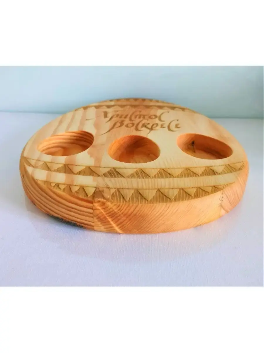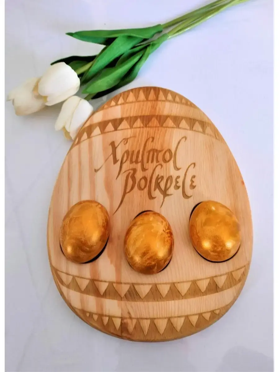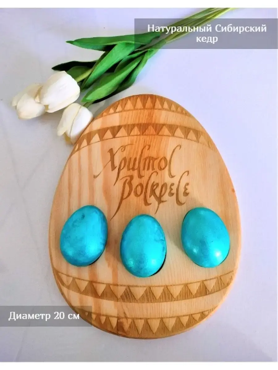Подставка для 3 яиц послужит украшением для праздничного стола. При производстве используются только экологически чистые материалы. Подставка сделана из натурального Сибирского кедра и покрыта натуральным маслом на основе пчелиного воска, что делает подставку для яйца очень надежным и качественным блюдом для сервировки и подачи. Пасхальная тарелка также может быть использована как подсвечник для чайных свечей диаметром до 3,8 мм., что делает декоративную подставку под яйца универсальным подарком на праздник пасха, юбилей, день рождение, новоселье и другие. Подставка под яйца пасхальная служит также как разделочная деревянная доска, если ее перевернуть на другую сторону. Оборотная сторона подставки для яиц деревянной может также быть деревянной доской для сыра или доской для подачи закусок. Подставка для пасхальных яиц имеет размер 25 см * 23 см и толщину 2 см. Пасхальные товары сейчас представлены в большом многообразии, но из года в год самыми экологичными и стильными являются именно деревянная пасхальные предметы декора и посуда. Пасхальные украшения создадут уютную праздничную обстановку на праздник Пасхи, но и после праздника пасхальные товары будут радовать вас своей универсальностью. Антибактериальные свойства кедра привлекают ценителей чистоты.