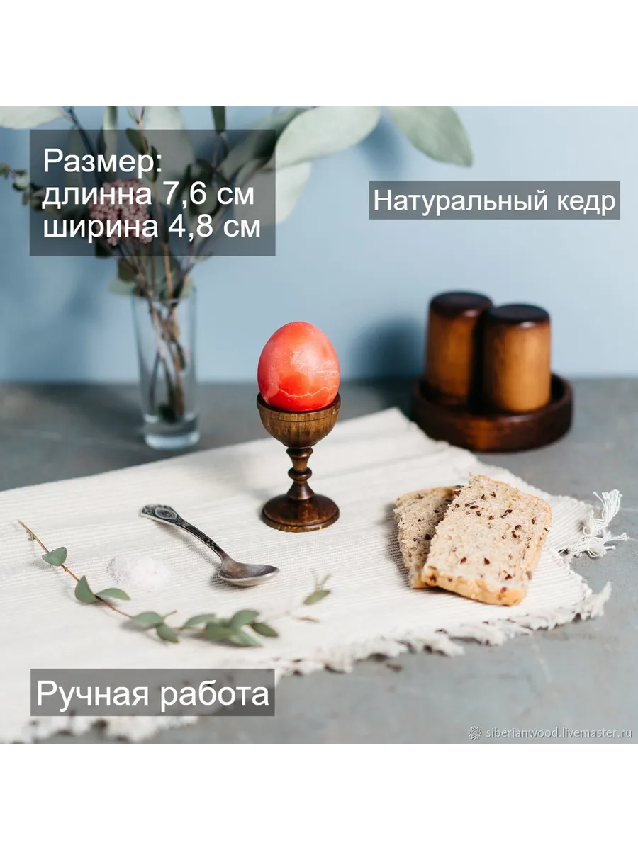 Подставка для яиц из натурального дерева Сибирского Кедра! Легкая и изящная! Ручная работа. Будет радовать Вас каждое утро за завтраком! Прекрасный подарок к пасхе и украшение праздничного стола! **Размер:** высота 7,6 см, диаметр 4,8 см.