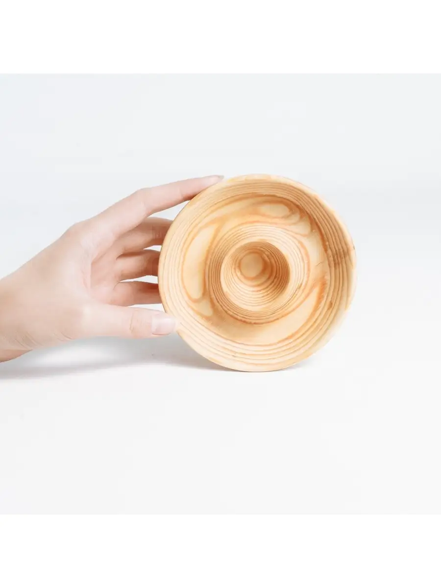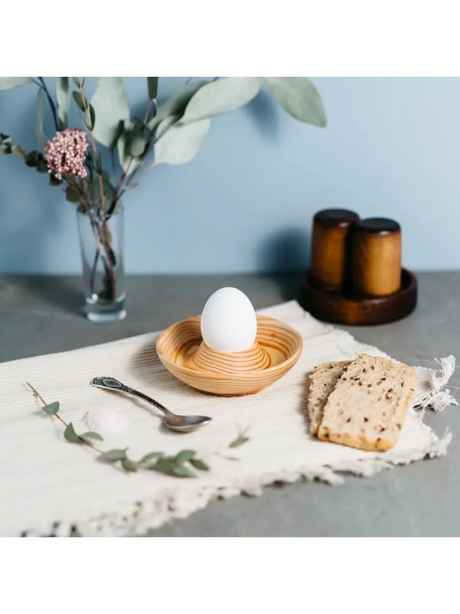 Деревянная подставка - блюдце для яйца с солонкой из древесины кедра. Легкая и изящная! Ручная работа. Натуральный цвет дерева. Отполирована, покрыта горячим воском и льняным маслом. Будет радовать Вас каждое утро за завтраком! Яйца всмятку нужно подавать только горячими, поэтому очень удобно иметь индивидуальную подставку! А удивительная фактура натурального дерева делает каждое изделие уникальным и создает неповторимый настрой! Прекрасный подарок к пасхе и украшение праздничного стола! Размер: высота 2,7 см, диаметр 11,8 см.
