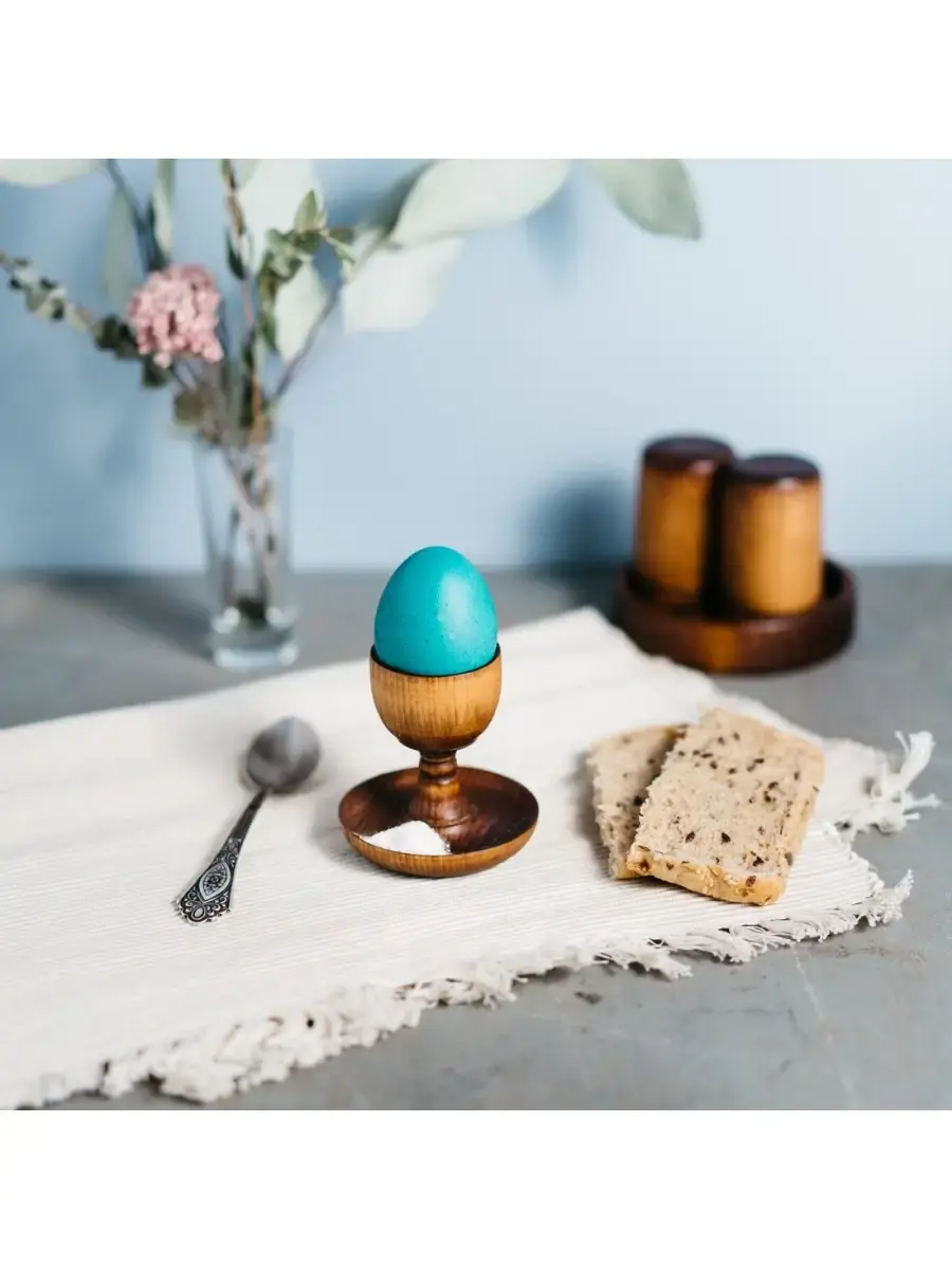 **Деревянная подставка для яйца с солонкой из древесины сибирского кедра. Они очень легкие, удобные, хорошо моются, интересно выглядят. Ко всему прочему, благодаря широкому дну подставки они прекрасно удерживают яйцо и не опрокидываются во время еды. Данные подставки своим элегантным видом и интересным дизайном украсят любой стол, накрытый к завтраку. Также это отличный подарок к пасхе и украшение праздничного стола! Размер:** высота 7,9 см, диаметр 7.5 см.
