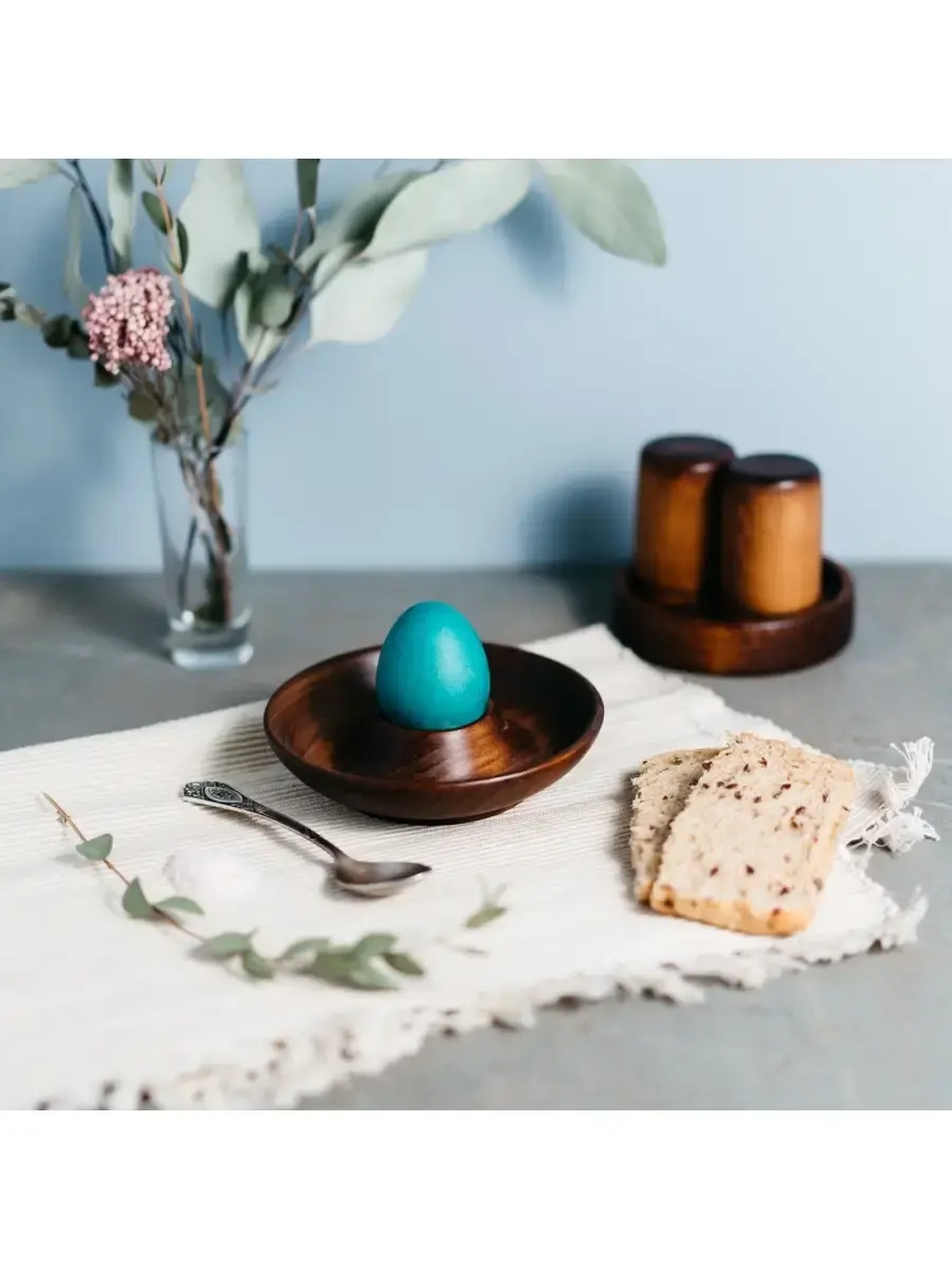 Деревянная подставка - блюдце для яйца с солонкой из древесины кедра. Легкая и изящная! Ручная работа. Отполирована, покрыта горячим воском и льняным маслом. Будет радовать Вас каждое утро за завтраком!Яйца всмятку нужно подавать только горячими, поэтому очень удобно иметь индивидуальную подставку, которая разместит яйцо и соль! А удивительная фактура натурального дерева делает каждое изделие уникальным и создает неповторимый настрой! Прекрасный подарок к пасхе и украшение праздничного стола! Размер: высота 2,7 см, диаметр 13,2 см.