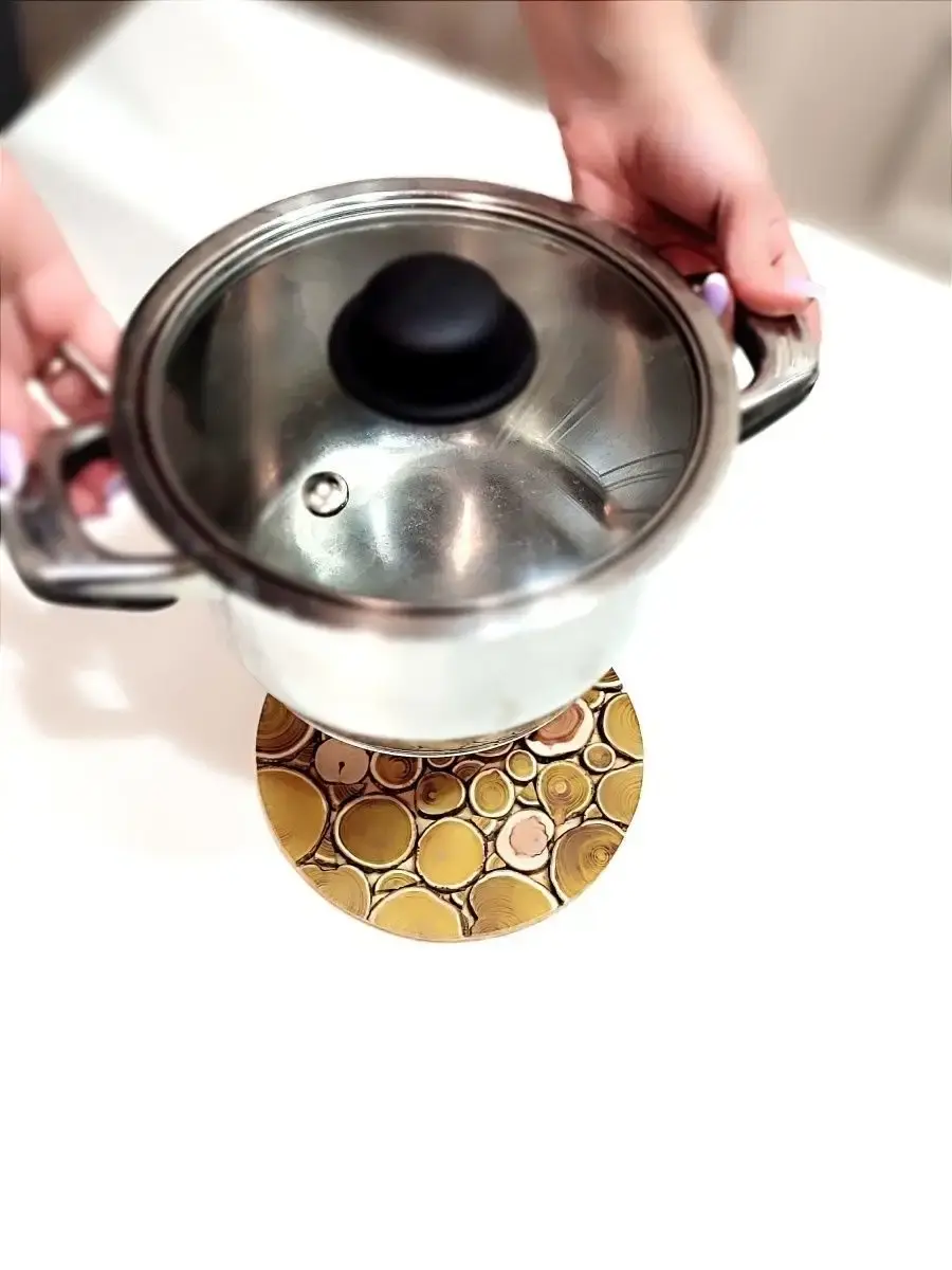Подставка в виде круга под горячее из спила натурального дерева можжевельника и скумпии является неотъемлемой частью кухонного инвентаря. Подставки универсальные и используются для любой горячей посуды, тарелок, крышек, чашек и кружек с блюдцами, заварочных чайников и даже бокалов, если хочется внести антураж в сервировку стола. Оборотную сторону кухонной утвари можно использовать как разделочную доску. Гармонично дополняет интерьер любой кухни и прекрасно вписывается в органайзер, лоток столовых приборов, не занимая большого пространства, что влечет за собой порядок и чистоту в хранении посуды не только на кухне, но и доме в целом. Такую подставку из дерева можно использовать не только на кухне, но и в любой комнате под цветочный горшок. А также дополнит уют и на даче. выбирает себе в дом все самое красивое и практичное, а наше изделие ручной работы именно такое. Рисунок товара может не совпадать с указанным на фото.. Ручная работа.