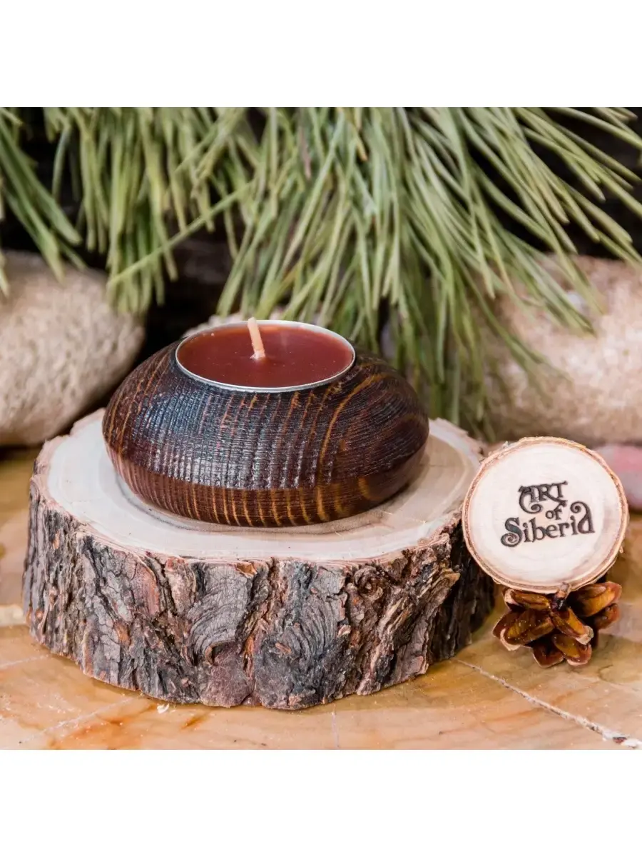 Деревянный подсвечник для чайных свечей из натурального дерева Сосна! Оригинальная текстурированная поверхность! Органично впишется в интерьер Вашего дома, придаст уют и тепло! Отличный подарок любимым и друзьям. Сделано в Сибири из экологически чистых материалов. Аромат живого дерева! **Размер:** 2,7 х 7 см.