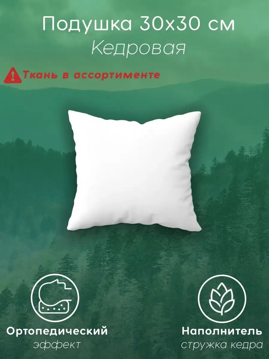 Подушка для здорового сна. Можно использовать как декоративную подушку для зала, гостинной. Размер подушки 300х300 мм. Жесткость подушки вы можете регулировать убирая наполнитель. Наполнитель: полностью экологичная и натуральная кедровая стружка. Хлопковая подушка с кедровой стружкой наполнит Ваш дом ароматом натурального Сибирского кедра! Приятное ощущение - сон на природе: палатка, маленький домик в лесу или поляна под открытым небом... Дышится легко, пьянящий аромат трав и деревьев дурманит, звуки природы ласкают слух. Спится легко и сладко... В городе такое удовольствие получить трудно, но возможно. В этом Вам помогут наши кедровые подушки. Кедровая подушка натуральна, экологична и полезна для здоровья. Обладает ненавязчивым ароматом хвойной древесины, что особо ценно в суете мегаполиса. Этот аромат несет невидимую пользу, предохраняя вашу семью от респираторных заболеваний, благодаря огромному количеству эфирных масел и фитонцидов. Особая фракция стружки делает подушки мягкими и упругими - их можно использовать как декоративные, диванные, для дневного отдыха и ночного сна, как подушки у изголовья. К тому же такая подушка это волшебный подарок на Новый год или новоселье! Подушка имеет массажный эффект, что хорошо для кожи лица и головы, для здоровья волос. Является профилактикой остеохондроза, головных болей, отеков лица и мешков под глазами. Чехол выполнен из 100% хлопка, имеет окантовку и застежку-молнию. Дорогие покупатели, обратите внимание, что ткань подушек в ассортименте, она может отличаться от ткани на фото!
